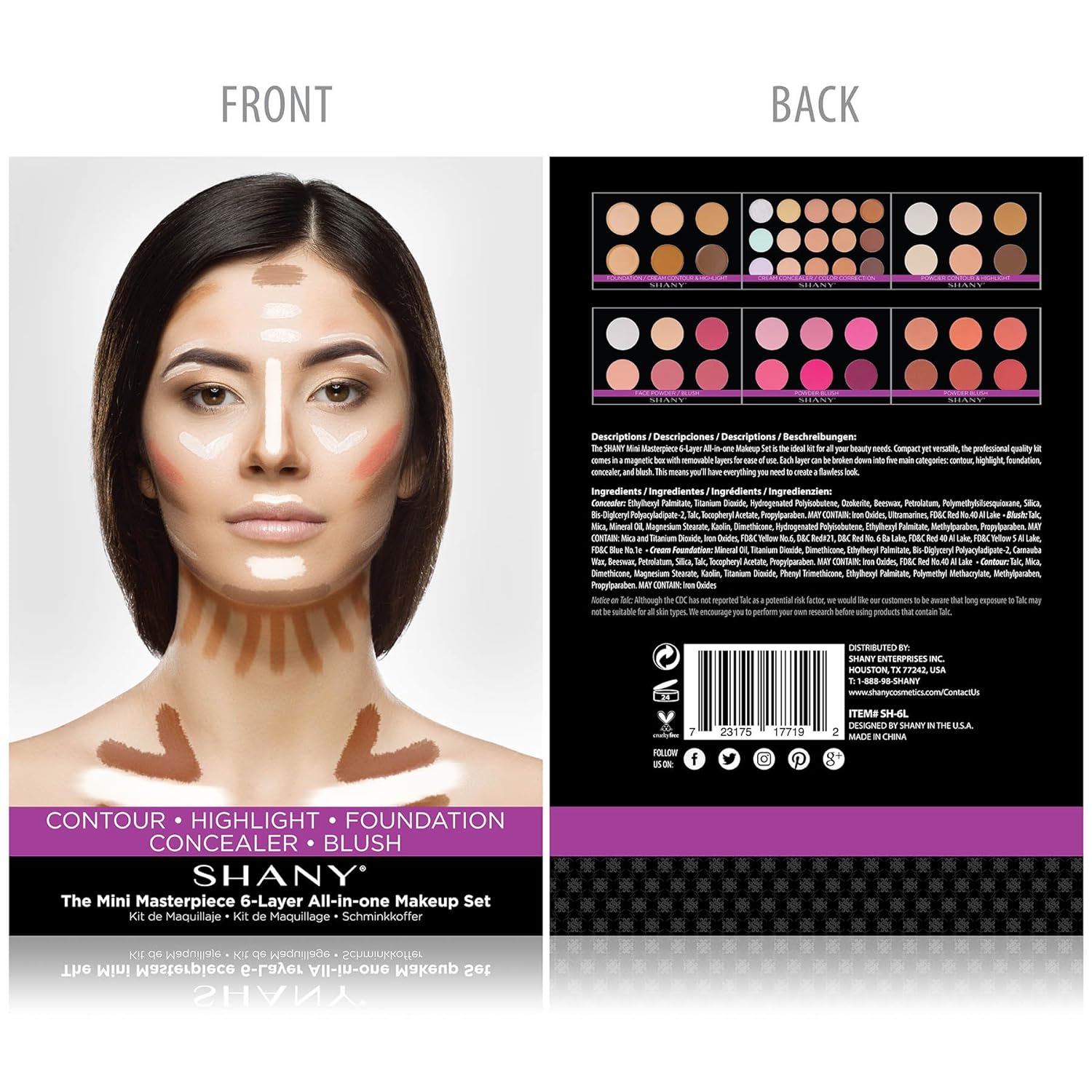 SHANY The Mini Masterpiece 6 Layers Makeup Foundation, Concealer, Camouflage, Contour, Blush and Face Cosmetics Sets - 6 Make up Kits Palettes
