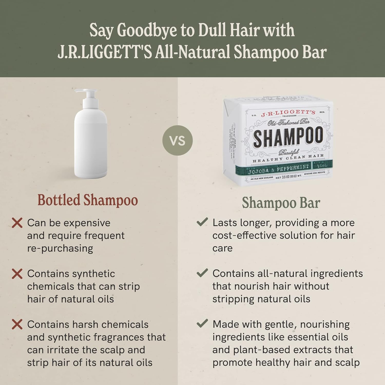 - Handmade in Cornish, NH: Hand-cut and made using a centuries-old recipe, no two of our J.R.LIGGETT’S shampoo bars are exactly alike! We make them the way they did over 100 years ago here in New England, making J.R.LIGGETT’S the brand shoppers trust.