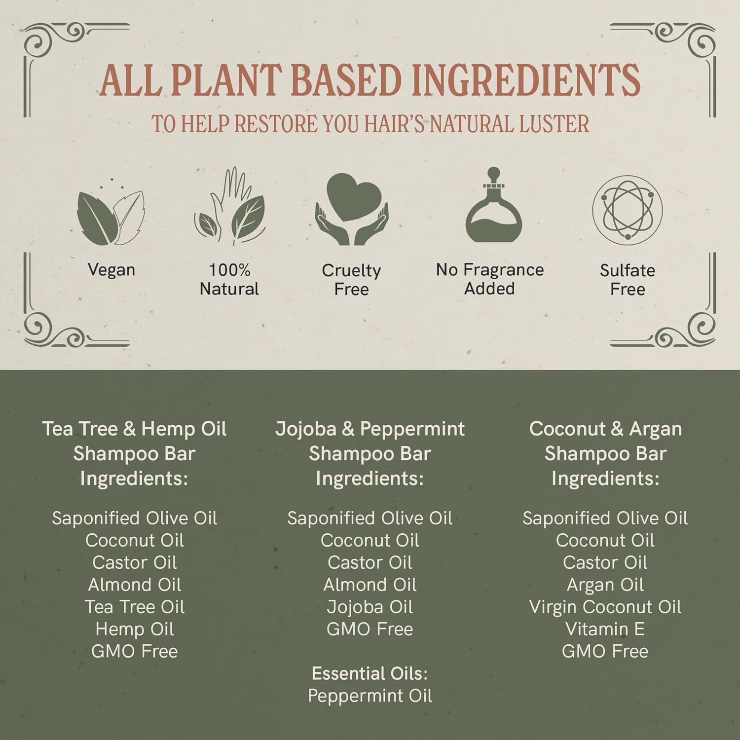 - Scent : Tea Tree & Hemp Oil, Jojoba & Peppermint and Coconut & Argan Oil