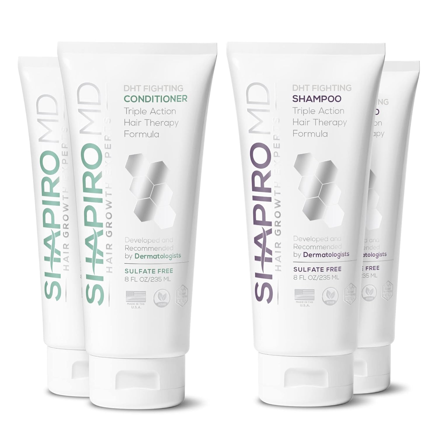 Shapiro MD Hair Growth Experts Hair Loss Shampoo and Conditioner, DHT Fighting Vegan Formula for Thinning Hair Developed by Dermatologists, Experience Healthier & Thicker Hair - 2 Month Supply