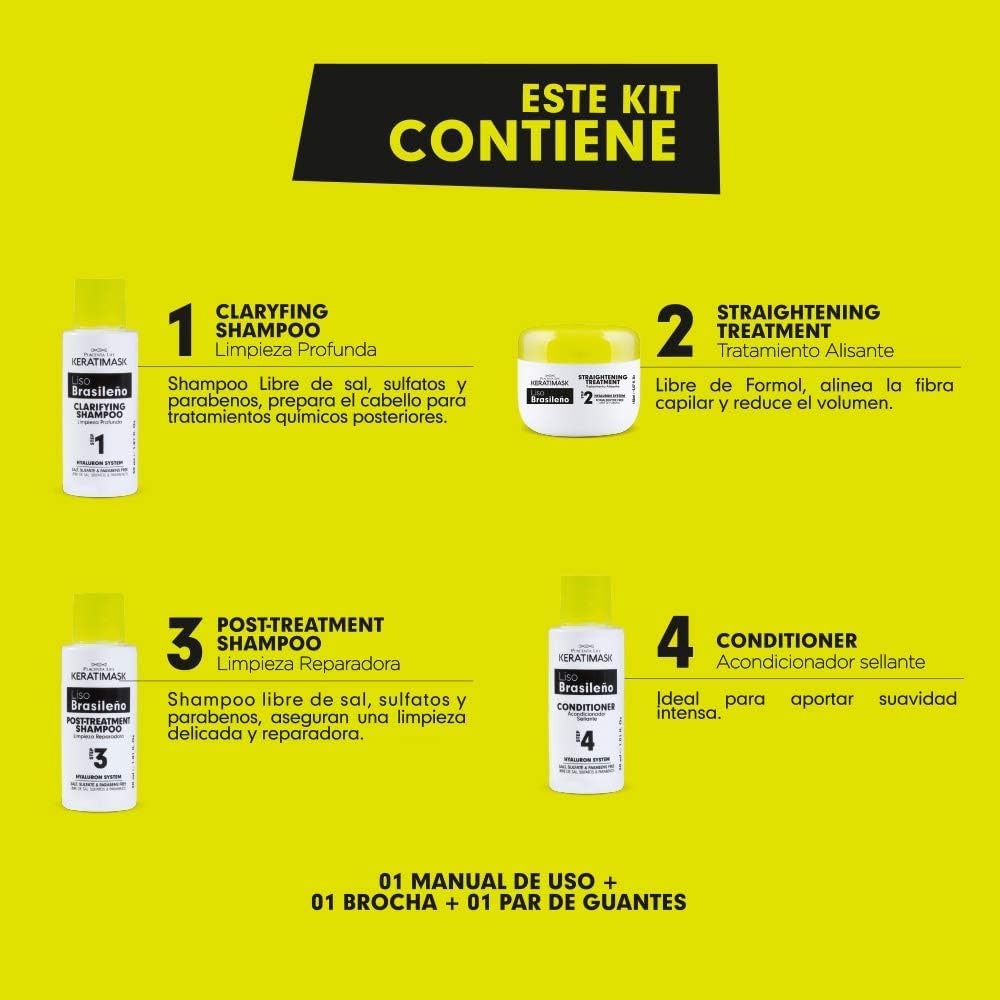 Brazilian Straightening Kit with Keratin and Hyaluronic Acid - Keratin Treatment- Get a perfect smooth, shiny and silky- Formaldehyde FREE