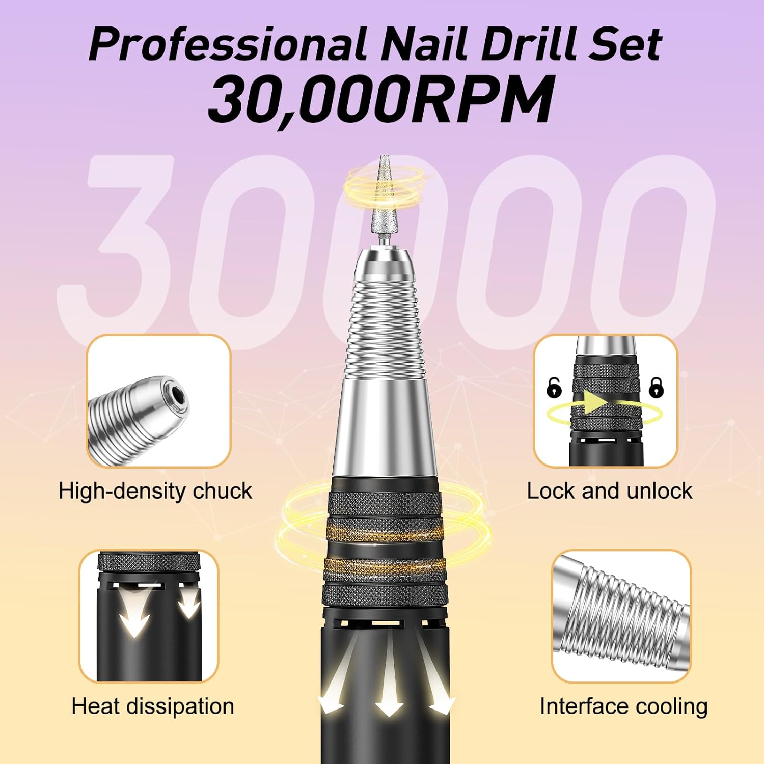 - Powerful Nail Drill: Jiasheng Nail Drill is powerful, speed up to 30000rpm, it emits less noise and heat than other drill, and the hand piece is small enough to fit in your hand, you wonโt feel hand fatigue during your operation for polishing acrylic nails