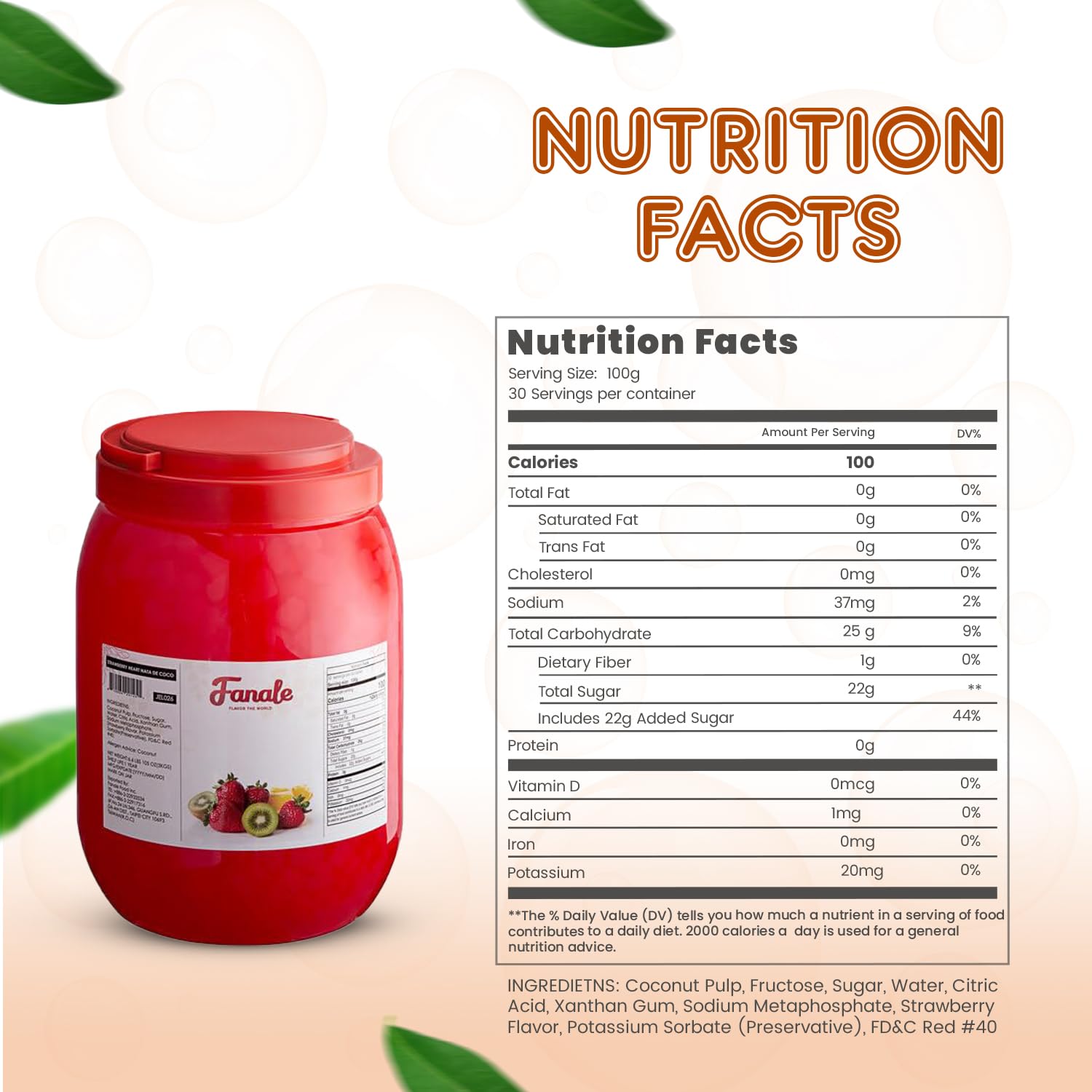 - ๐๐ฐ๐๐๐ญ ๐๐ง๐ ๐๐ฑ๐จ๐ญ๐ข๐ ๐ ๐ฅ๐๐ฏ๐จ๐ซ: Each Fanale coconut jelly boba tea variety is infused with sweet and exotic flavors that complement a range of recipes. This nata de coco jelly topping includes strawberry, lychee, blueberry, mango, sakura, green apple, coconut, Konjac, and coffee flavors, adding a distinct and delightful twist to your creations.