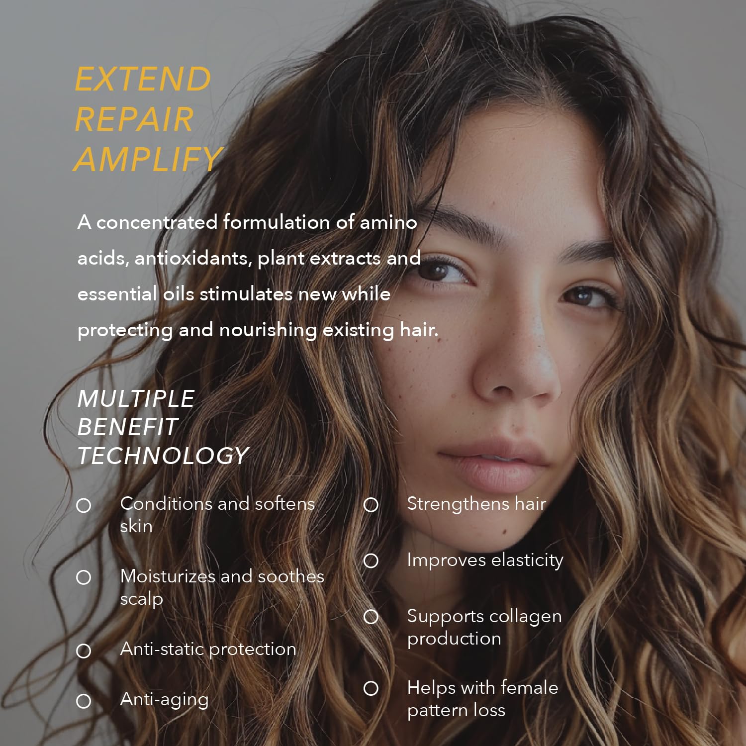 - FORTIFY, MEND, OPTIMIZE By promoting cellular rebuild and turnover, AGELESS fortifies hair, making it more elastic and resistant to breakage. With regular use, witness the mending of inner hair fibers, amplified strand fiber production, and optimized absorption capabilities of the skin and follicle. EXTRA: Perfectly formulated to safeguard and prevent hair damage, especially when using extensions.