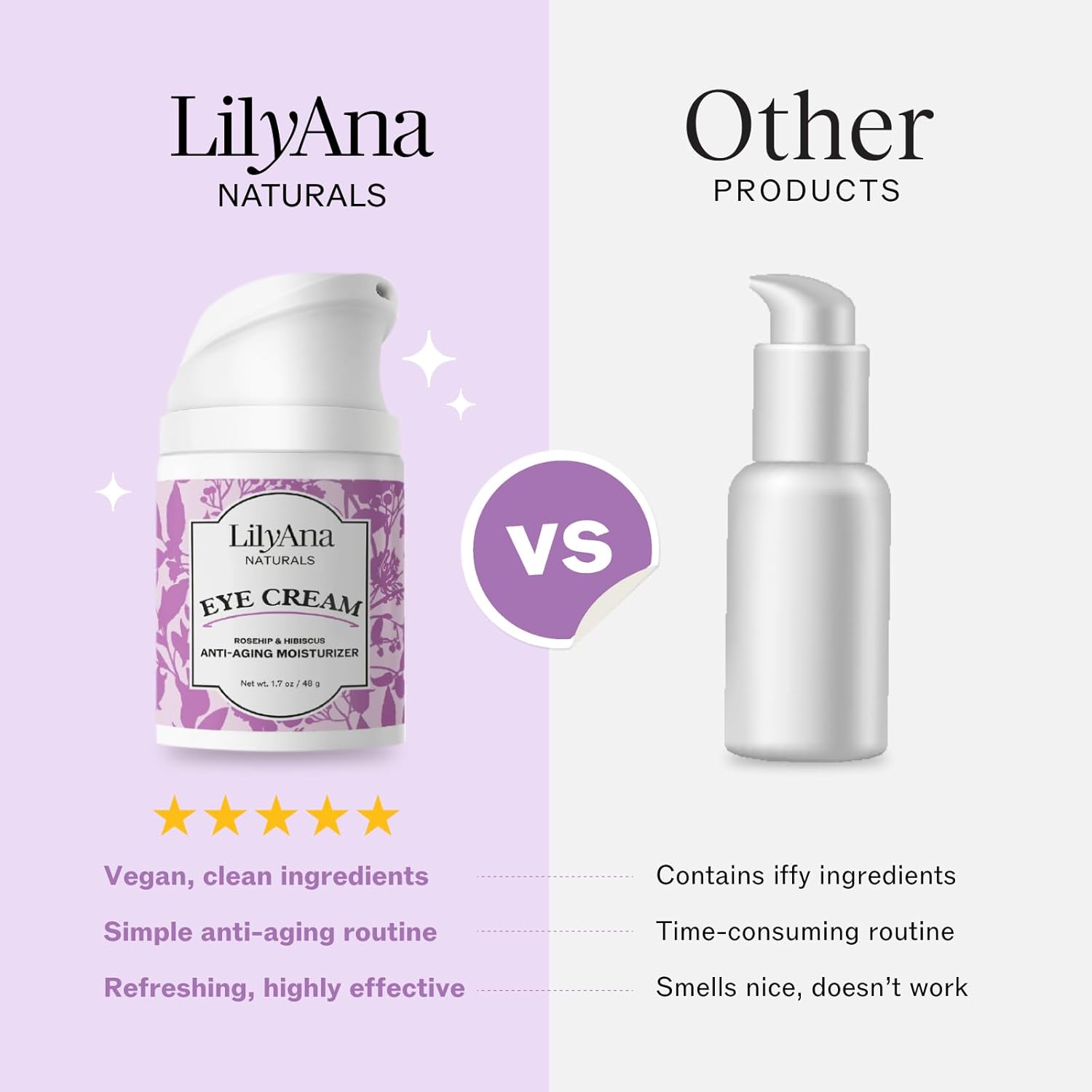 LilyAna Naturals Eye Cream - Eye Cream for Dark Circles and Puffiness, Under Eye Cream, Anti Aging Eye Cream Reduce Fine Lines and Wrinkles (0.5 Ounce, Rosehip and Hibiscus (Bottle))
