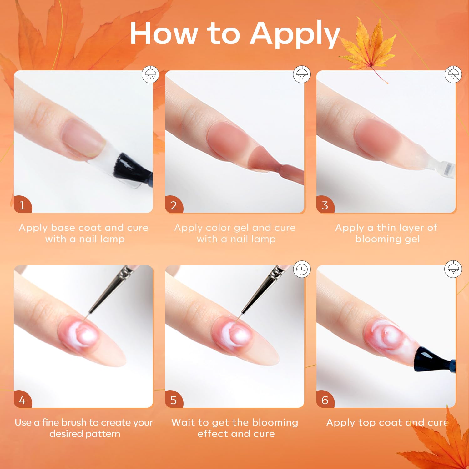 - One Bottle Get All Design:The clear blooming gel can apply with any color gel, easy to create a stunning blooming effect. Apply blooming gel before color gel, then use nail art brushes to create your own fun, fancy, and elegant manicure in seconds.