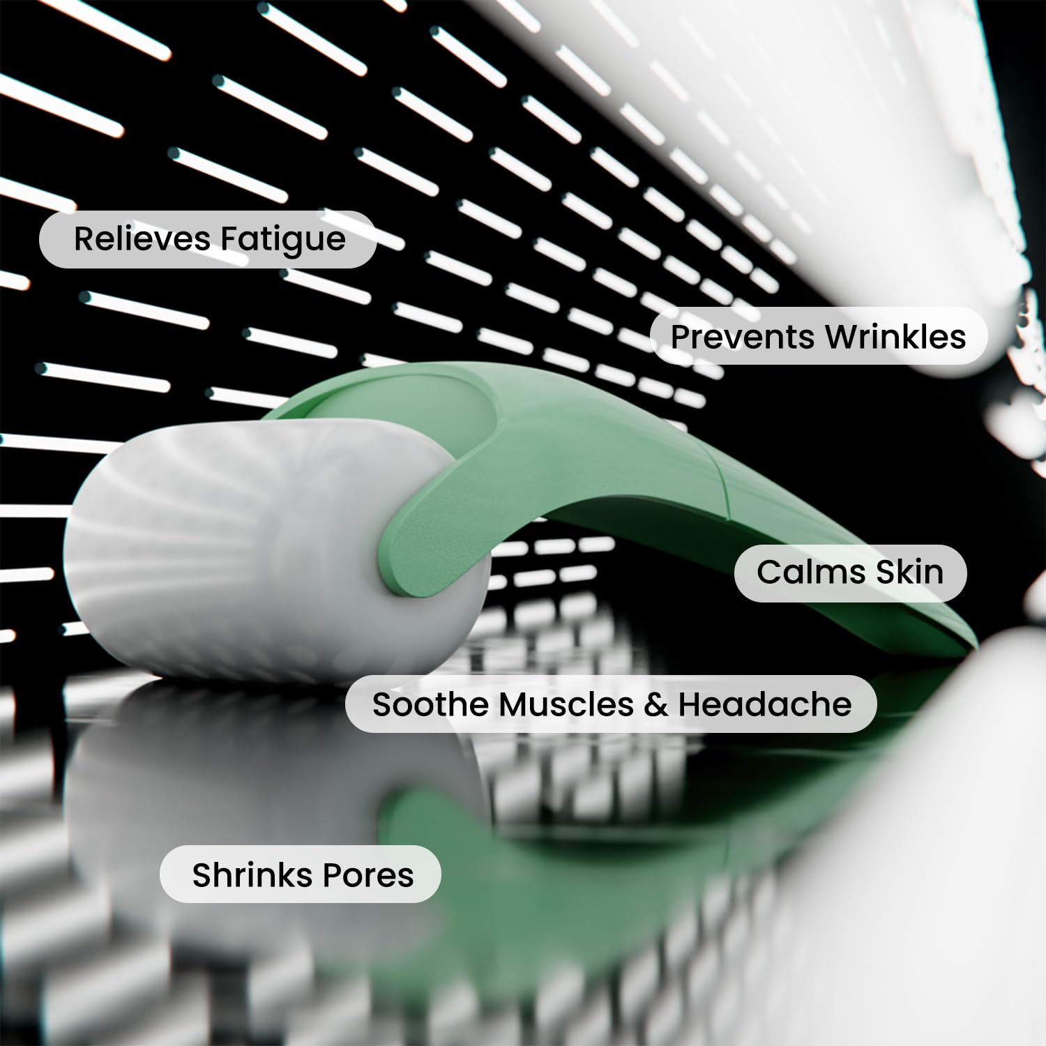- Use as the Face Massager - promotes blood flow and helps clear pores while the coolness reduces wrinkles and seals in moisture.