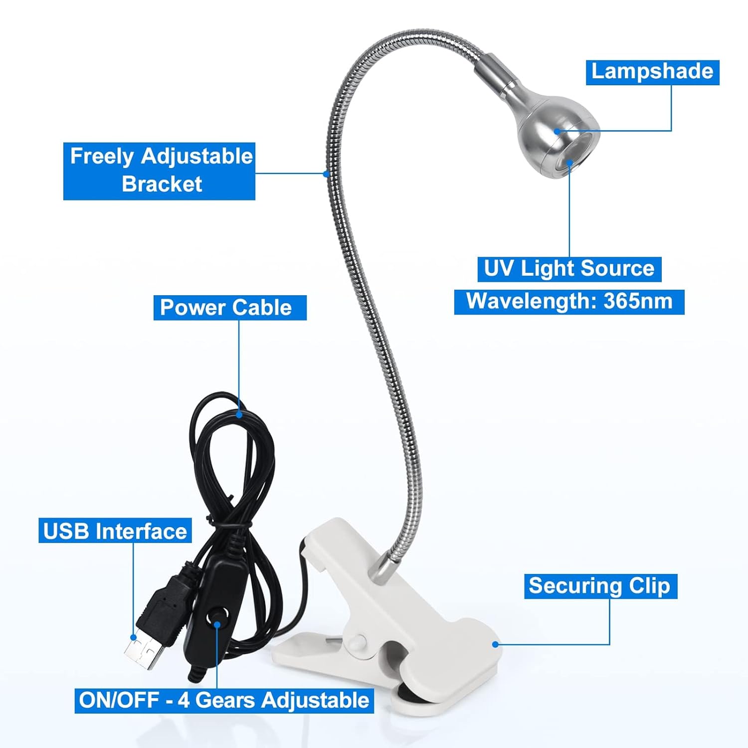 AORAEM U V Nail Lamp - Sliver 3W U V Light for Nails 35NM U V LED Nail Lamp with Gooseneck and Clamp for Gel Nails (AA-Silver)