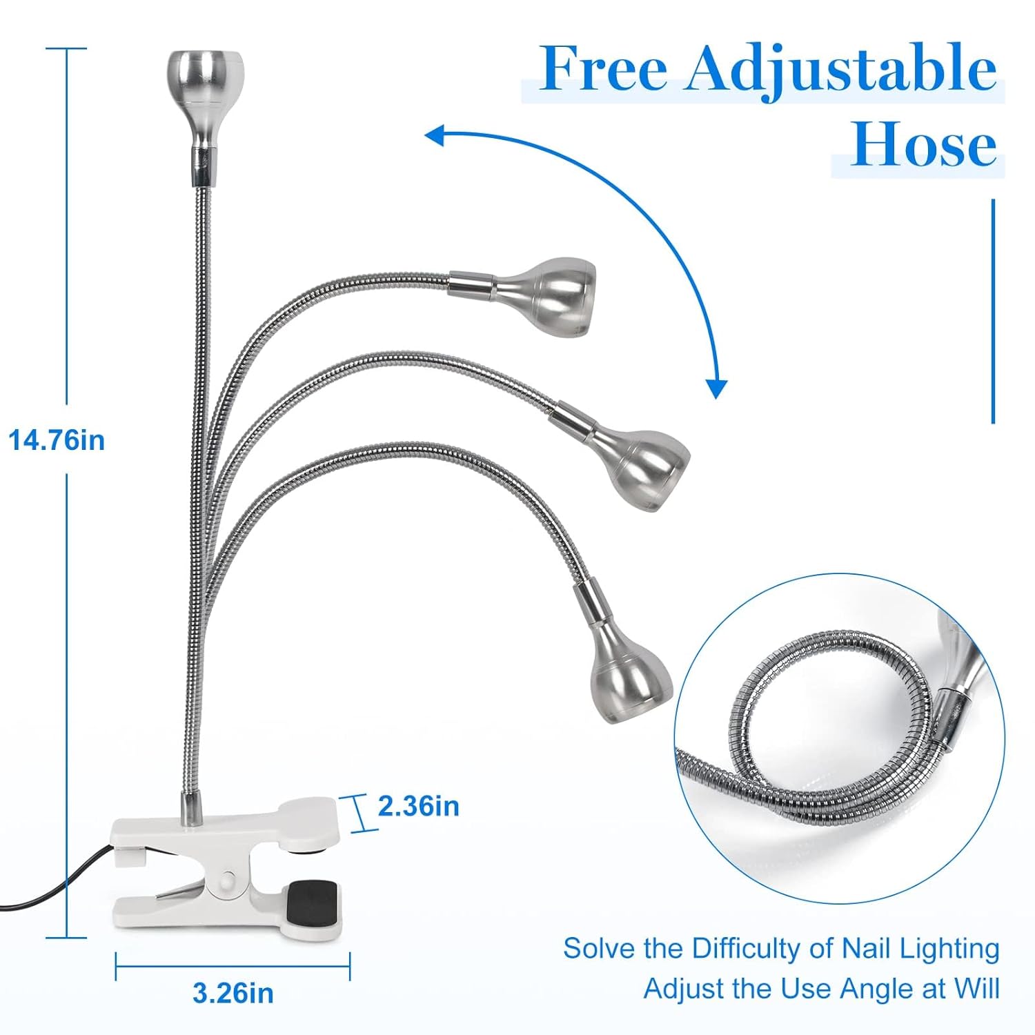 • 【Can Use Anywhere】Our gel lamp for nails with flexible clip, it is very suitable for fixing to the bedside table, office desk, laptop desk, headboard, etc.A variety of ways to meet your different need.
