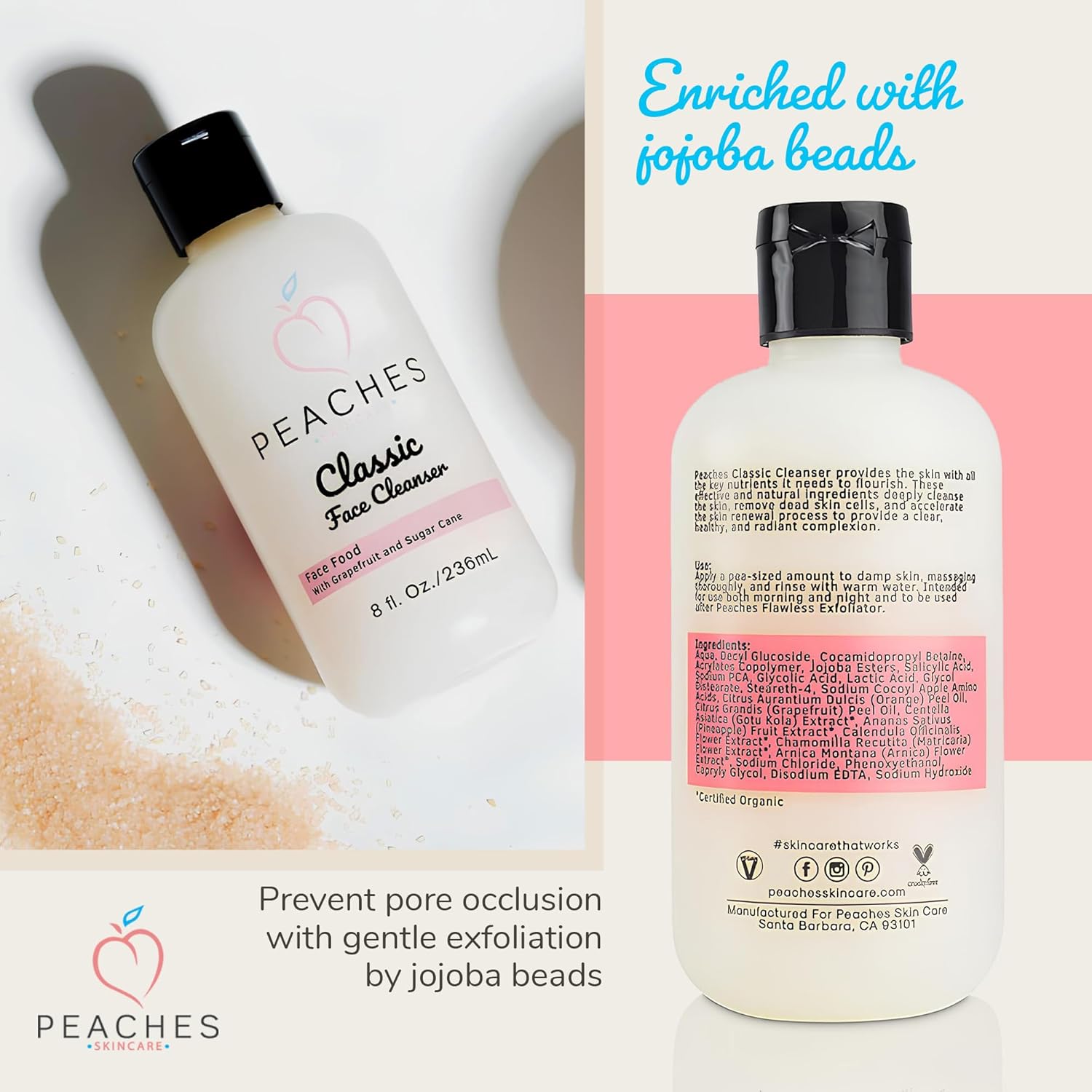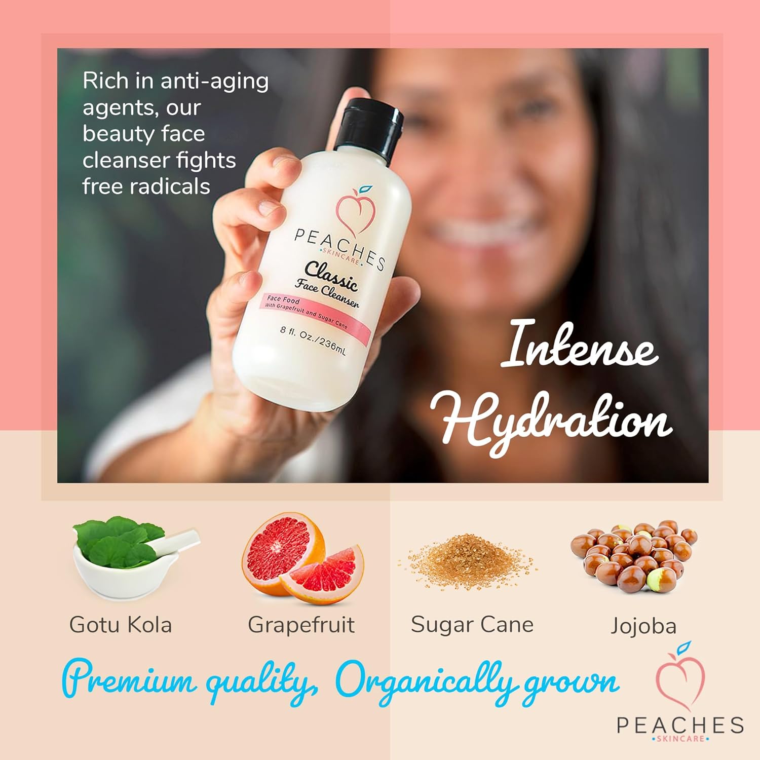 • Classic Face Cleanser - Deeply cleanse and rejuvenate your skin by using the Peaches’ Classic hydrating cleanser. This women and men's face wash provides your skin with all the essential potent nutrients it needs.