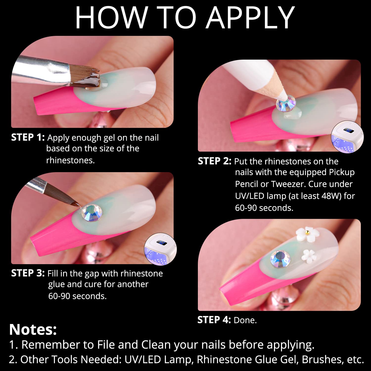 • EASY TO USE -- The back of the gemstones is flat and is easier to be applied to the nails. We also equip the package with convenient dotting pen and tweezer for your application.