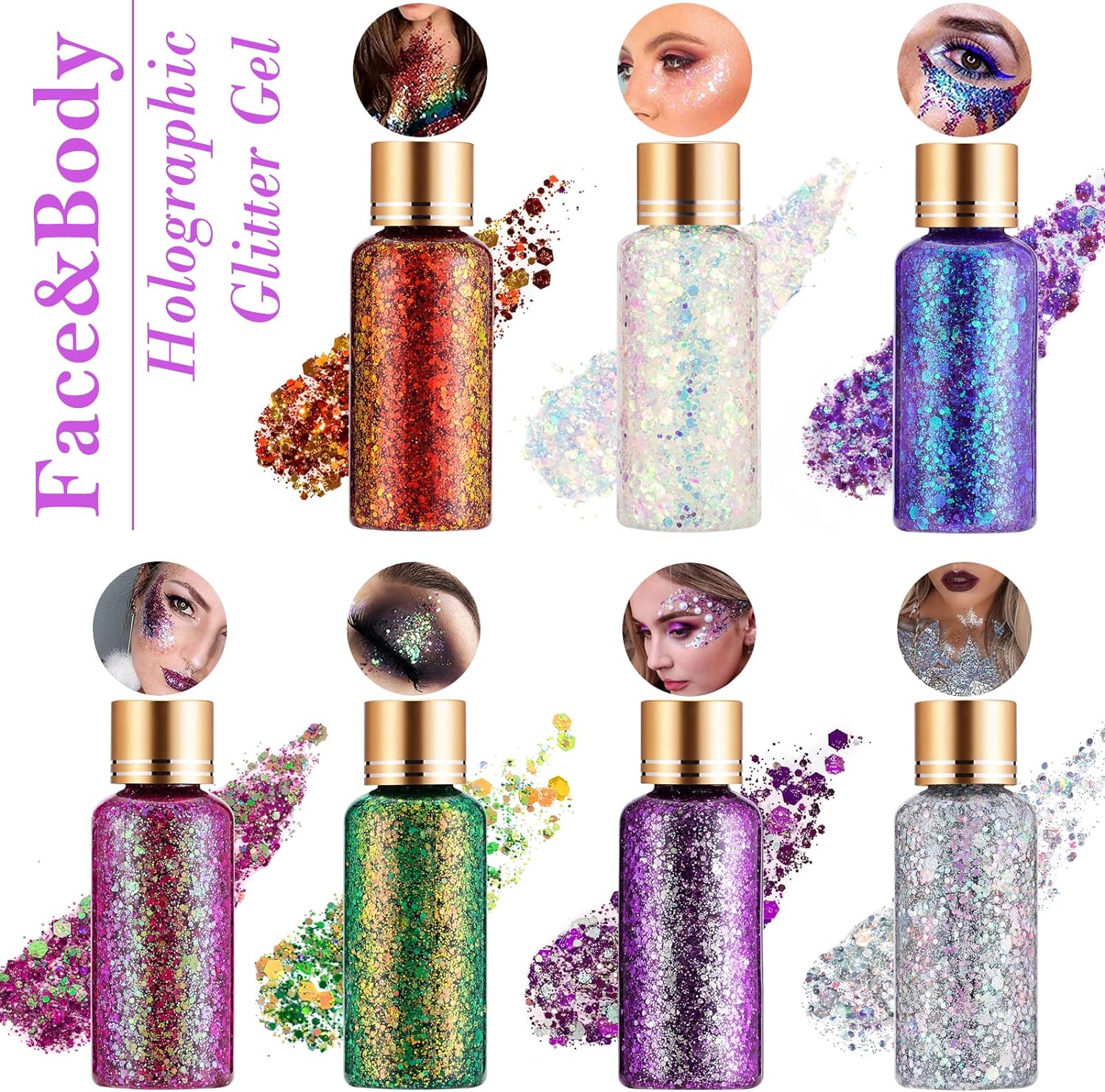 - RICH COLOR FACE GLITTER : This body glitter gel can be applied to the eyes, face, hair, collarbone, shoulders, and other body areas to effortlessly create a stunning, sparkling look. It's perfect for occasions like parties, weddings, birthday celebrations, stage performances, bars, and nightclubs.