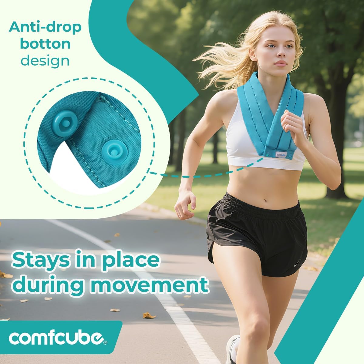 - Secure and Adjustable Fit - Our neck ice pack with buttons design allow for a customizable and secure fit, ensuring the ice wrap stays in place during use, whether you're moving or resting. With the ability to fasten the wrap securely around the neck, it frees your hands for other activities while still providing continuous cooling relief.