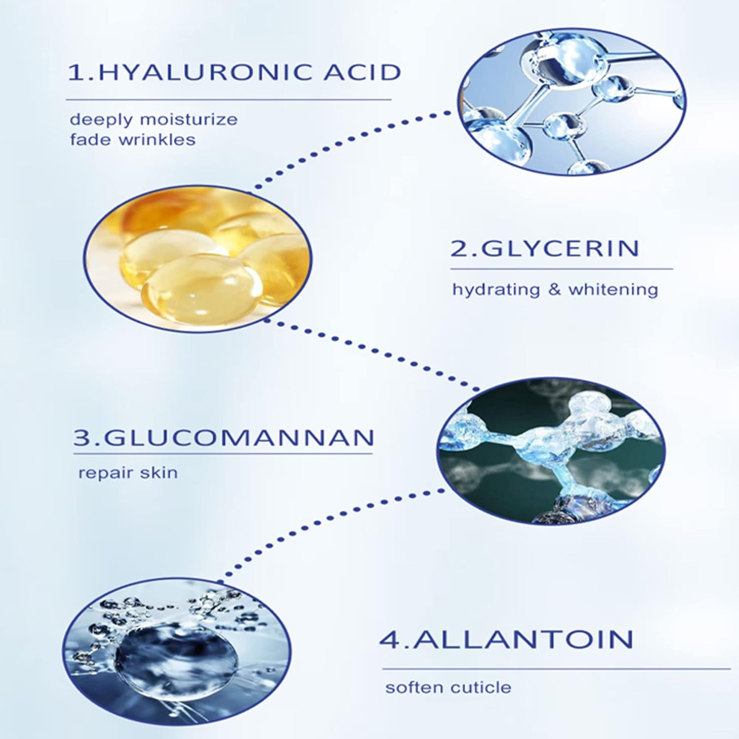 - Hyaluronic Acid Eye Mask: As we know the hyaluronic acid has an excellent moisturizing nourishing power, so that the skin is more smooth, soft and moisturizing.The hyaluronic acid gel eye patches can remove eye fine lines in a short time, relieve eye bags and dark circles, moisturize, firm, and smooth the eye skin, and improve the elasticity of the eye skin.