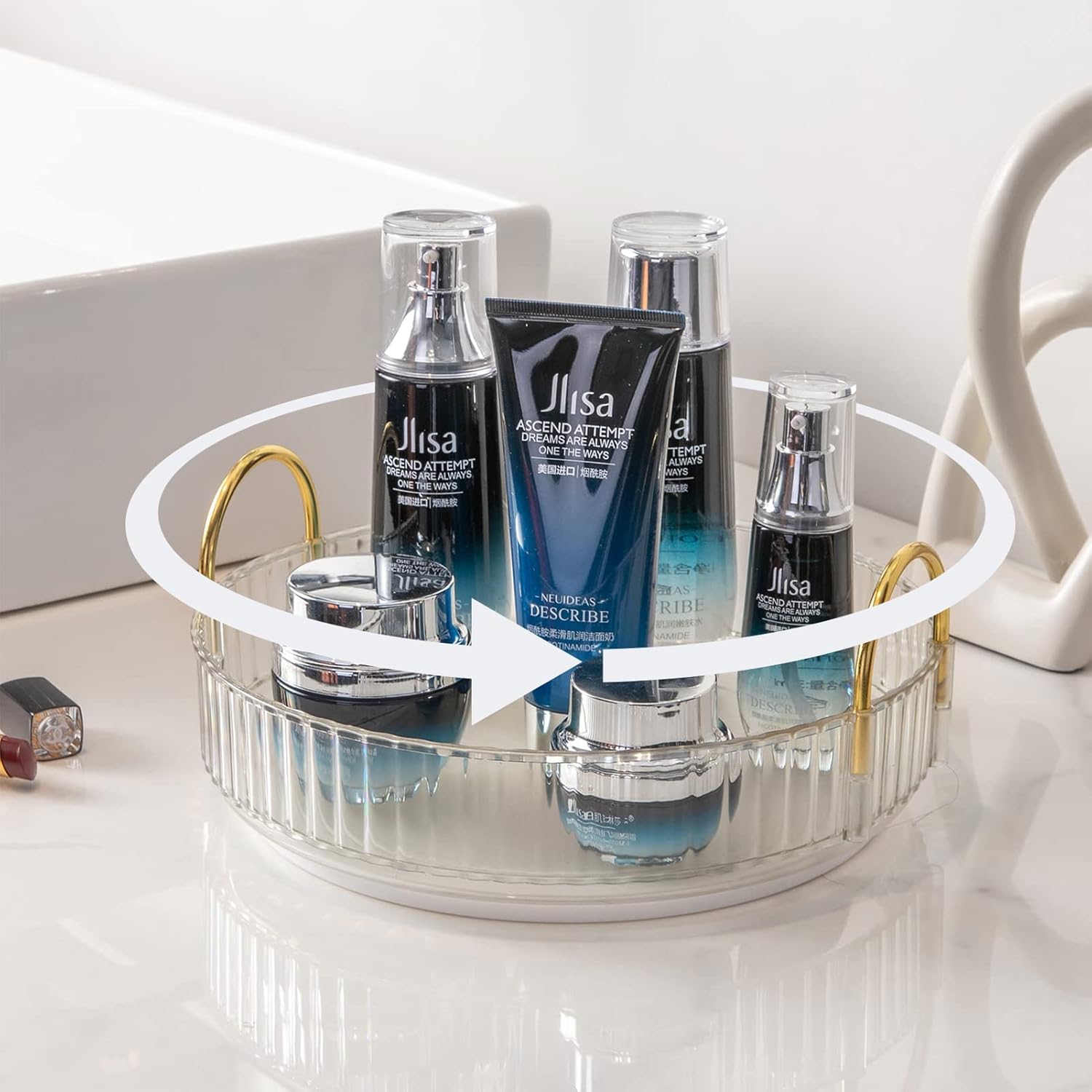 • mooth Rotation: 360 degree rotation makes it easier to find what you need and brings you a convenient using experience. Tray edges are 1.96'' high to ensure that cosmetics do not fall out when