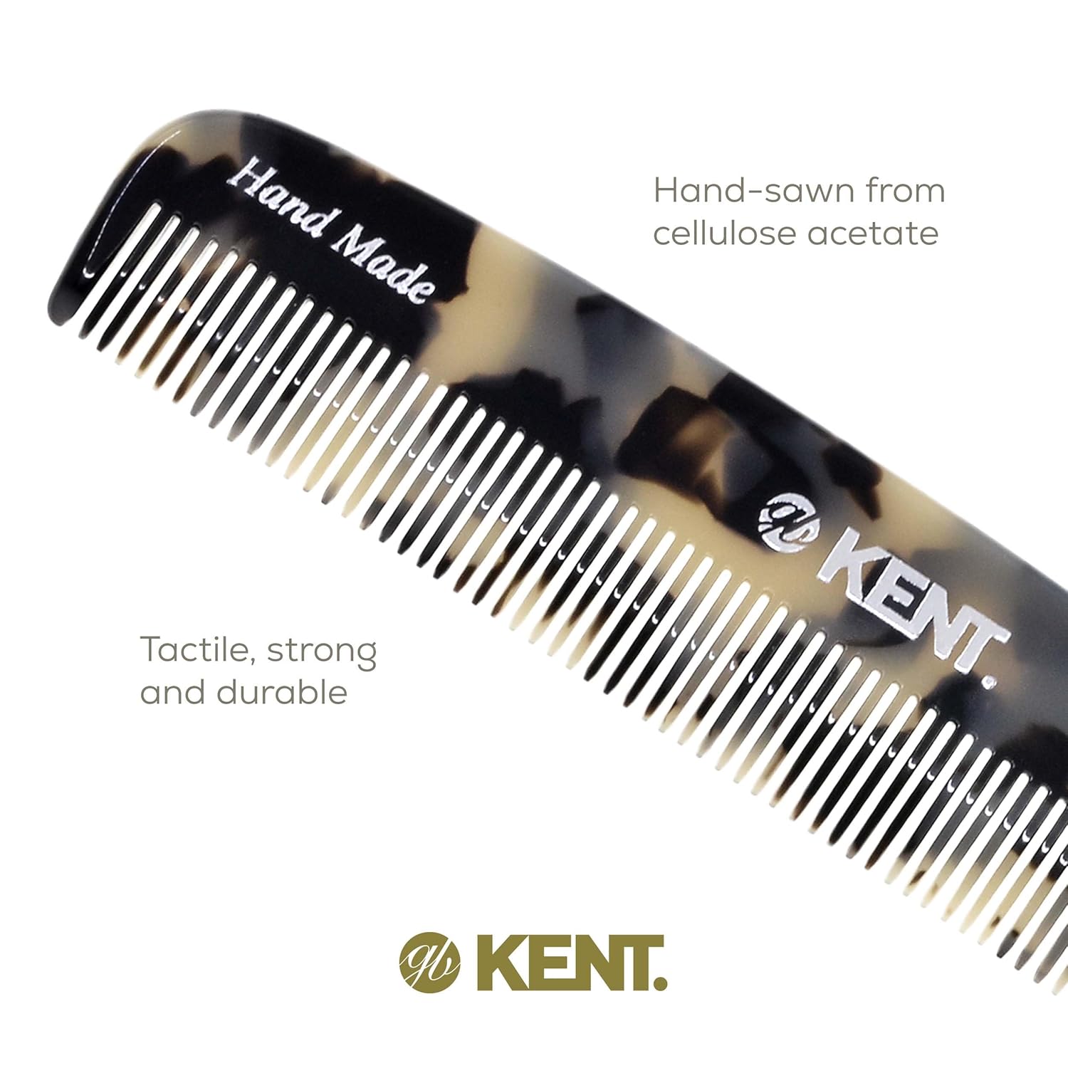 - GENTLE GLIDING COMB: The hand sawn combs are the nature of Kentโs Success. Cellulose acetate is a tactile, yet flexible and strong matrial. They glide effortlessly through hair without scratching or damaging the hair or scalp. Kent Combs have rounded teeth which ensure smooth and comfortable action.