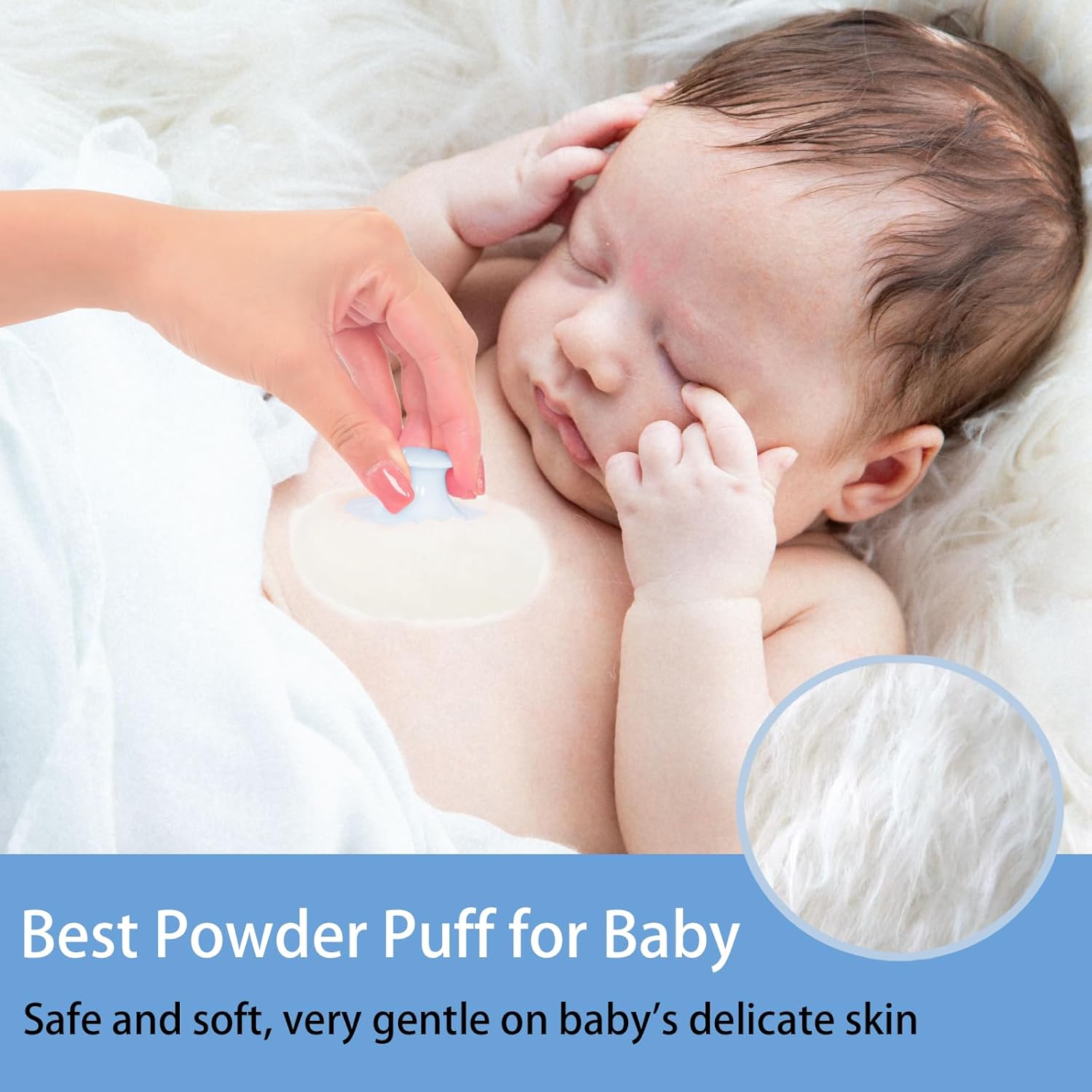 - ă2 Body Powder Puffsă: Considering the daily needs of our customers, our body powder container is equipped with 2 body powder puffs which made of delicate and smooth touch artificial woolïŒodorless, individually packaged. The large powder puff with a handle can directly take an appropriate powder apply for body, fast and convenient! The small puff (2.28 ") can take a small amount of powder more delicate and apply evenly on baby skin.