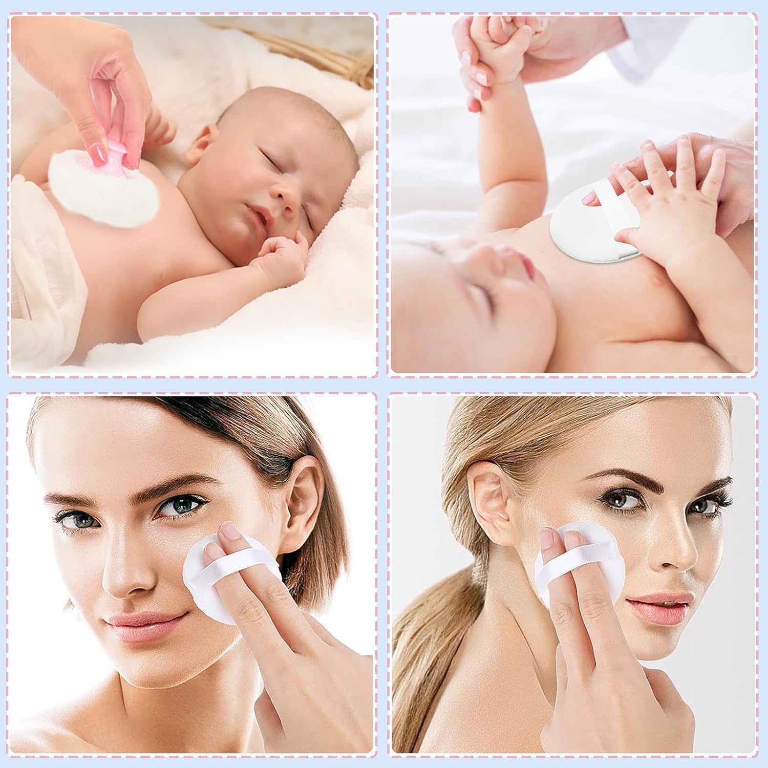 - ăWide Applicationă: Bathing in hot summer, absorbing moisture on your greasy hair, keep the skin fresh and smooth. This dusting powder container is very suitable for baby and women as a perfect travelling gift for your friends, specially suitable for short trips, meeting the daily needs of the body powder and skin care population.