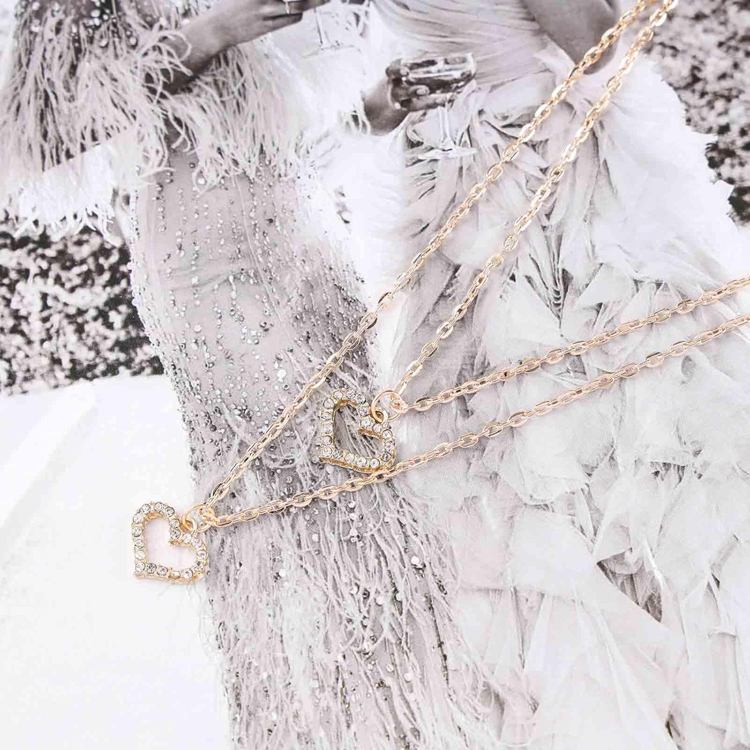 - Layered crystal heart necklace made of high quality alloy and rhinestone,make the surface of the necklace brighter,hypoallergenic,wonโt irritate your skin.