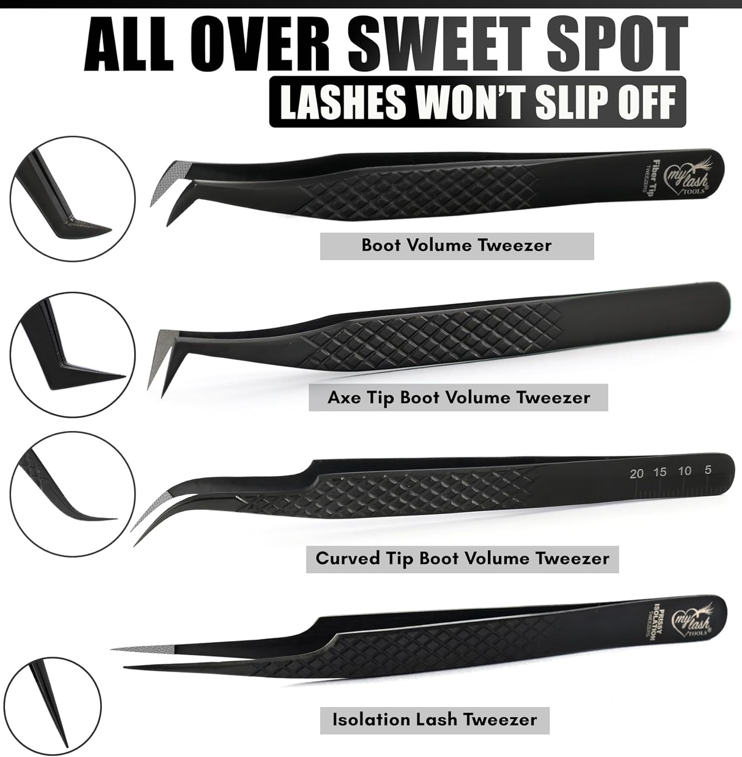 - ๐ COMFORTABLE TO USE - Perfect for all lash artistsโbeginners to pros. Lightweight, durable, and precise. Ideal for volume lashes, with a complete grip and all over sweet spot. Fiber tip tweezers are easy to carry packed in case. Your ultimate lash tech must-haves! Prefect for isolation & mega volume.