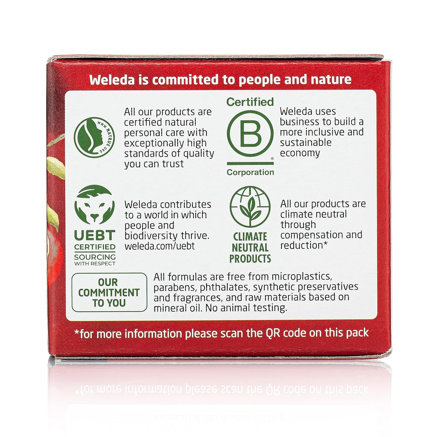 - THE WELEDA COMMITMENT: Our products are free from parabens and phthalates, synthetic fragrances or preservatives. We use flower, fruit and root extracts, minerals and essential oils, carefully selected and orchestrated to work with bodyโs own systems. We do not test on animals.