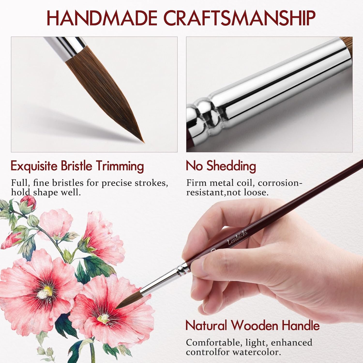- The sable watercolor paint brush's body is made of wood, making you feel comfortable and stable while holding it. Unique anti-shedding bristle technology gives you a wonderfully satisfying, painting experience.