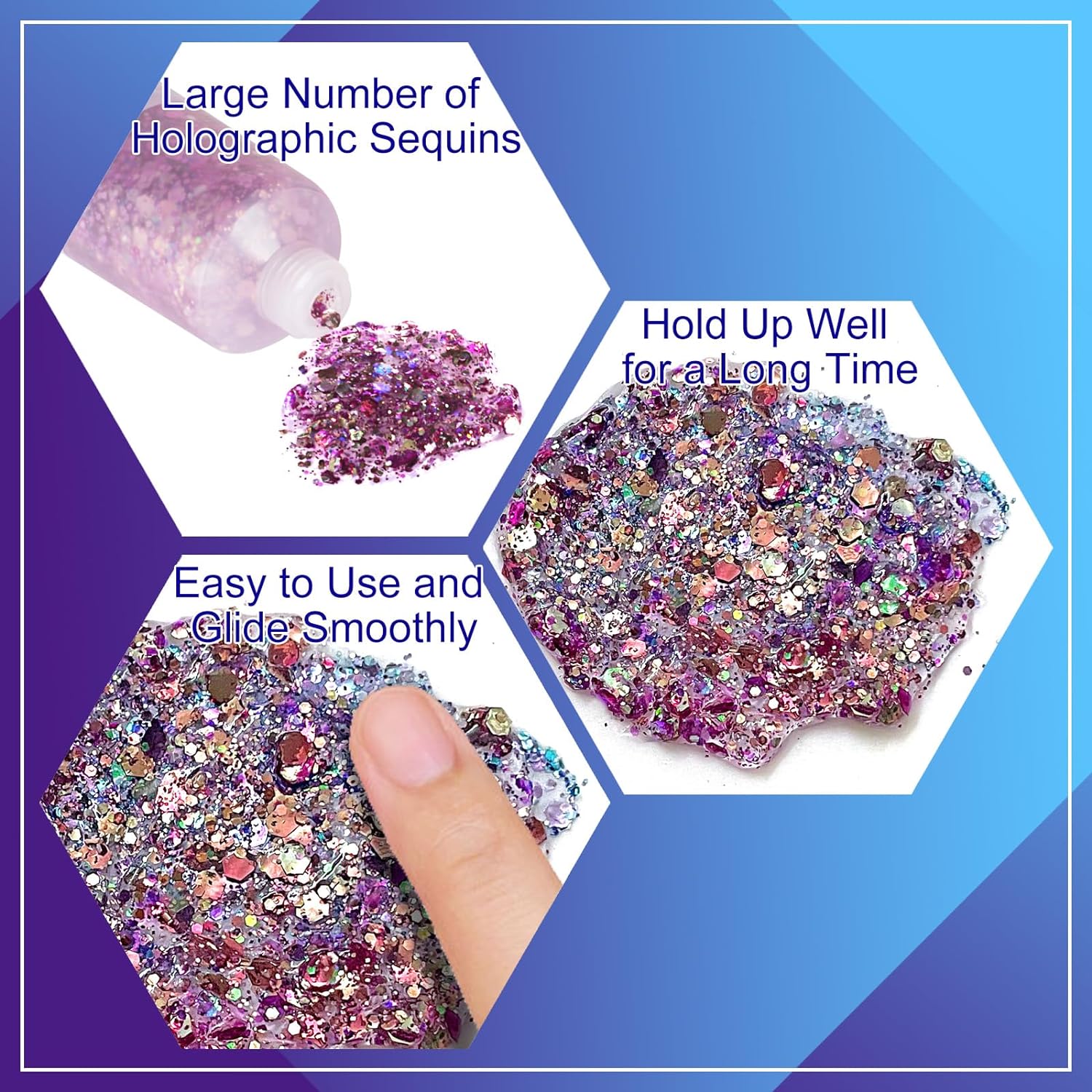 - Lightweight Glitter:MEICOLY chameleon face body glitter gel is lightweight,doesn't aggravate the skin when wearing it.Designed in tube package,easily control the amount of glitter, it spreads on easily and does not feel sticky on the skin