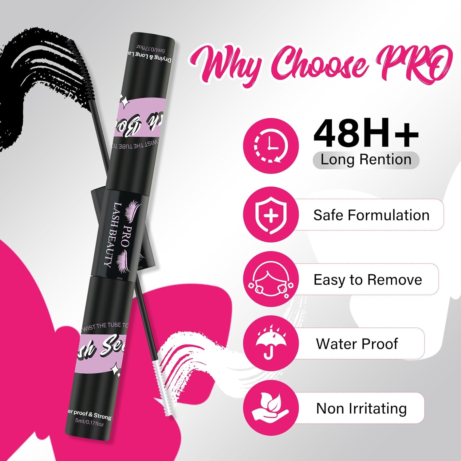 - Double sides double functions: PRO Lash Bond (5ml) and Seal (5ml) combine 2 steps into 1 tube. Glue your cluster lashes and longer the retention till 48 Hours.