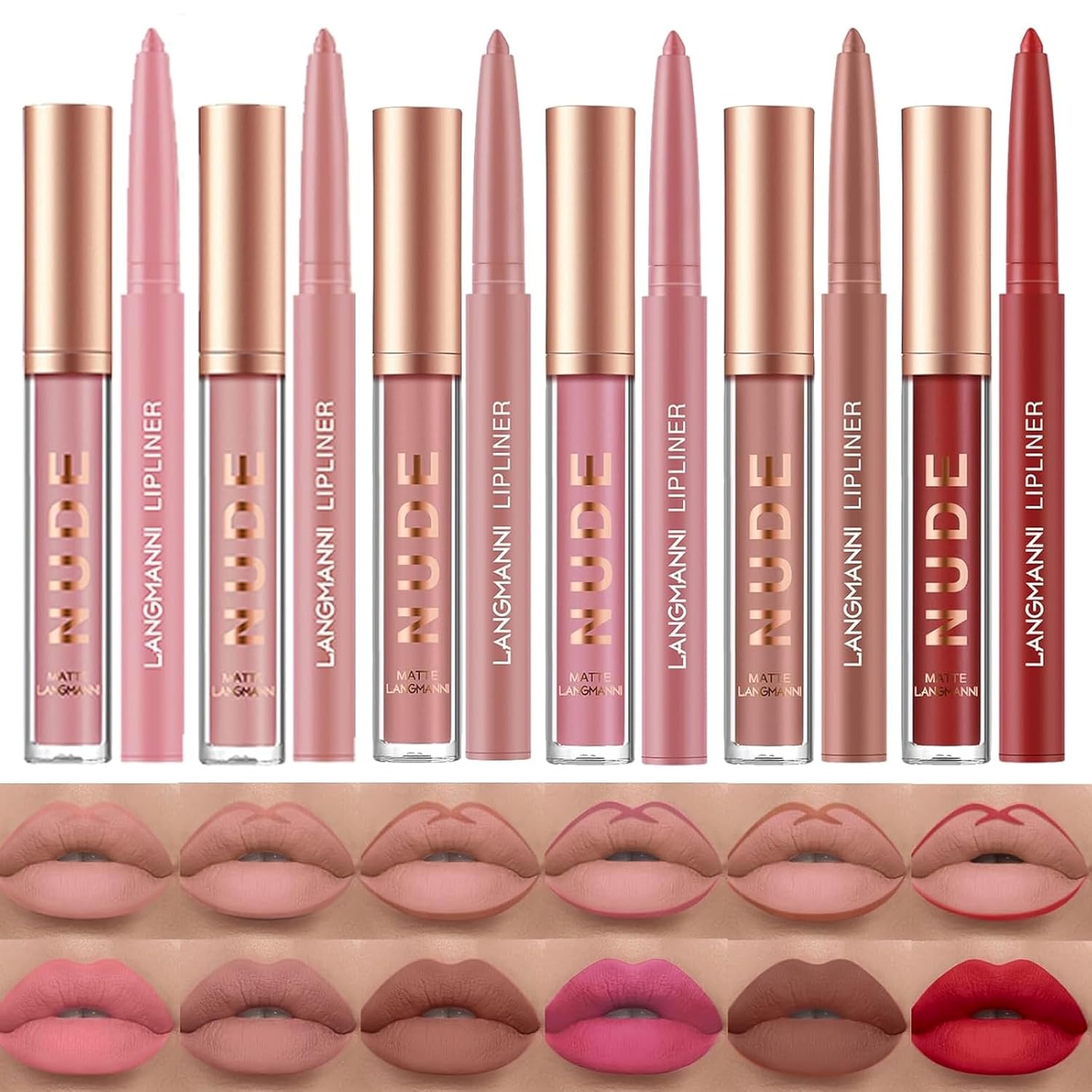 LANGMANNI 6 Matte Lipstick with 6 Lipliners Durable Makeup Set,Long-Lasting Non-Stick Cup Not Fade Waterproof Pigmented Velvet Lipgloss Kit Beauty Cosmetics Makeup Gift for Girls (#B)