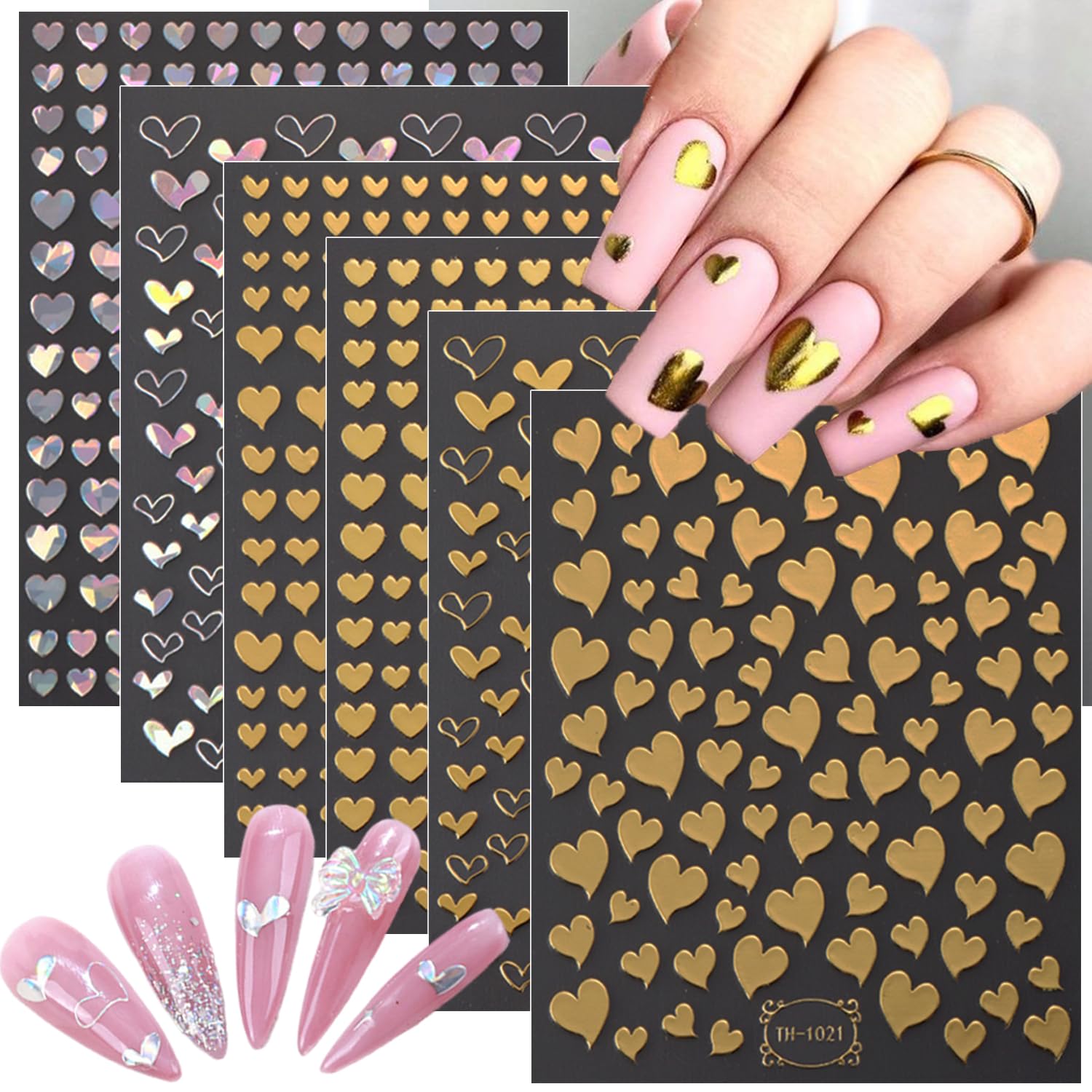 - Heart Nail Stickers Set- You will get 6 sheets classic valentine's day theme heart nail art stickers, in this package you can find patterns you like and create your own style. Can add a strong Valentines atmosphere.Perfect for women girls, Valentine's day nail design, DIY creates Valentine's nail decals.