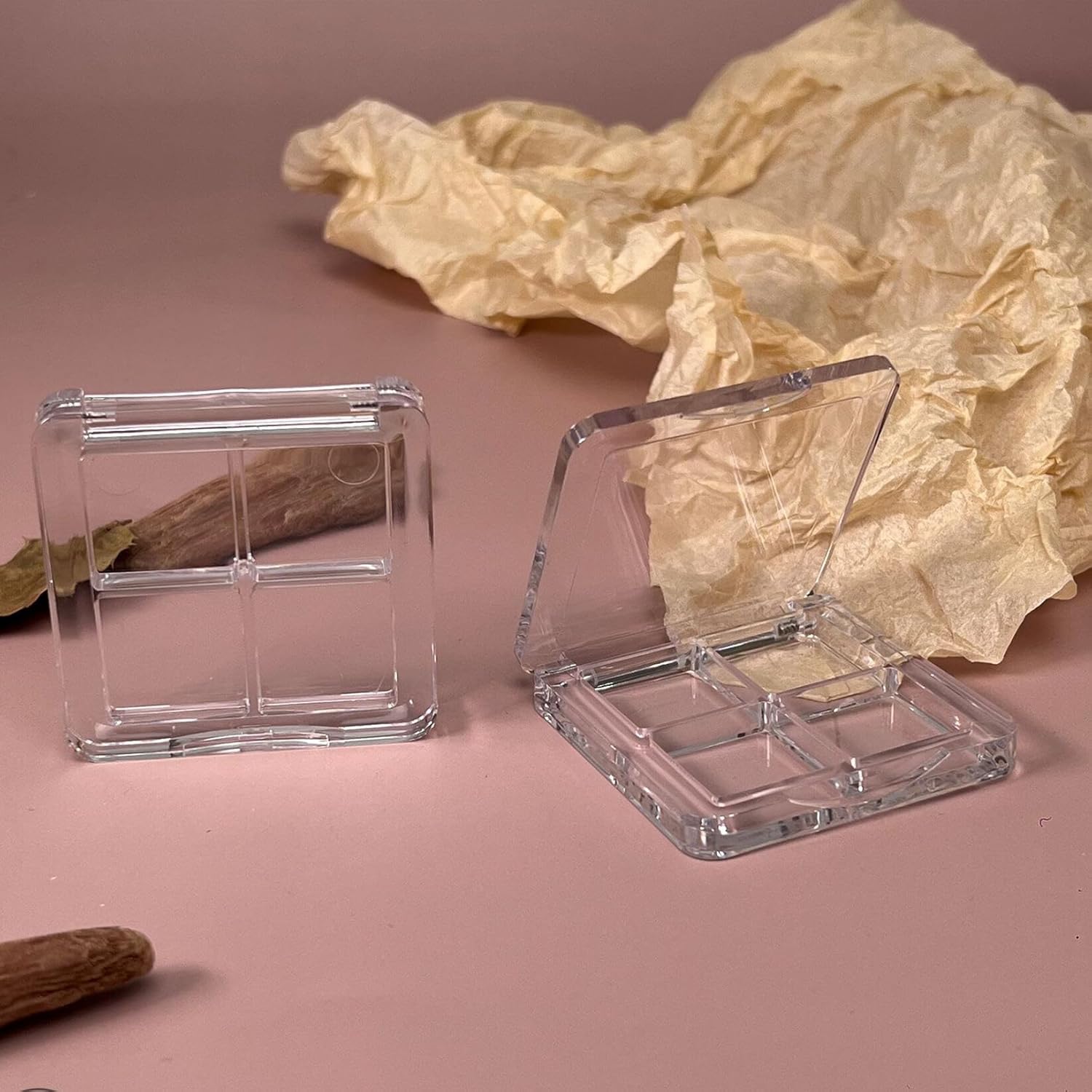 - Packing contents: 2PCS refillable eyeshadow tray, material: plastic, four Spaces can be filled with different colors, suitable for daily use or carry around.