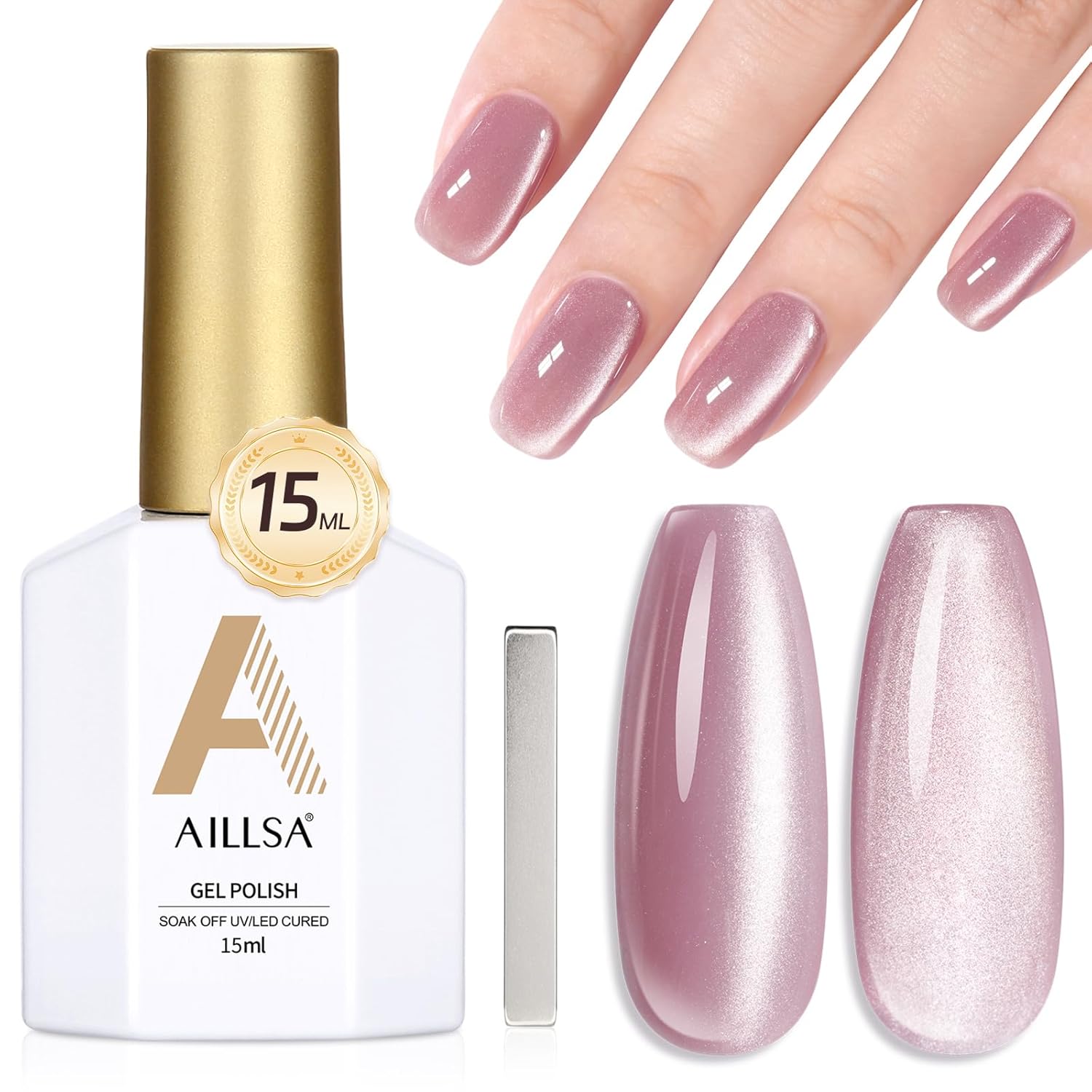 - CRYSTAL SPARKLING EFFECT - AILLSA Cat Eye Gel Nail Polish has a dense magnetic powder that can be used alone for a mirror-shimmering, crystal-clear manicure or with any base color nail polish, jelly gel nail polish, and other nail polishes.