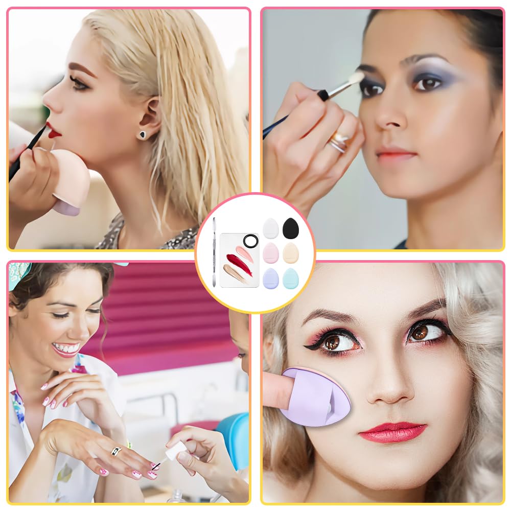 - 💄【Wide Application】You will receive a set of foundation palette + color mixing stick + six mixed color thumb puff, stainless steel palette can free your hands to achieve easy color mixing; color mixing stick double-ended design, you can dig, cut cream makeup products, clean and hygienic; thumb puff design is small, fingertip-sized, make-up is more convincing, make makeup more convincing, this makeup tools set is suitable for any cosmetic products, free to customize the eyeshadow, lipstick, concealer, foundation, pigment, etc., color and texture as you like