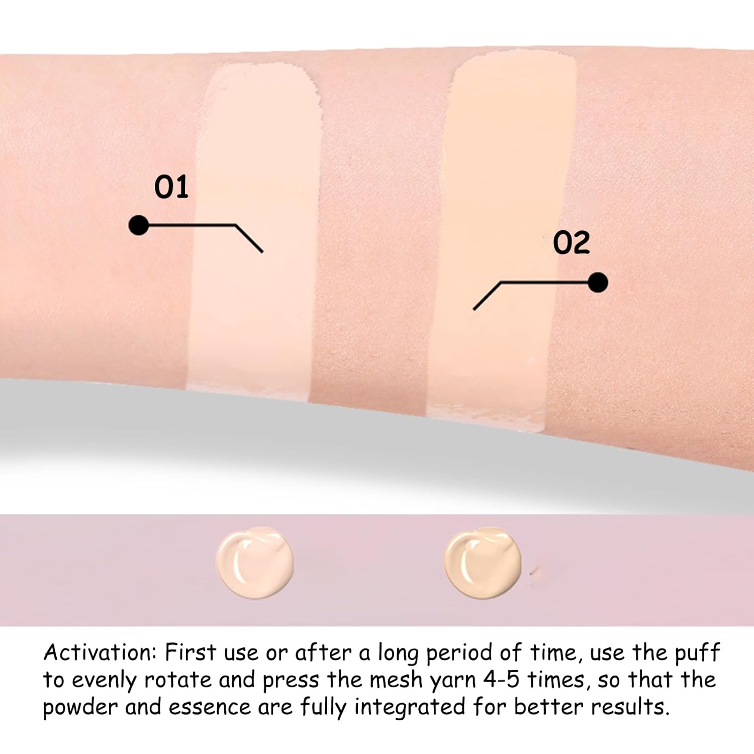 - Recommended Uses For Product : Before using for the first time or after a long period of time, use the puff to evenly rotate and press the mesh screen 4-5 times, so that the powder and essence are fully integrated before applying to the face. Before using for the first time or after a long period of time, use the puff to evenly rotate and press the mesh screen 4-5 times, so that the powder and essence are fully integrated before applying to the face.