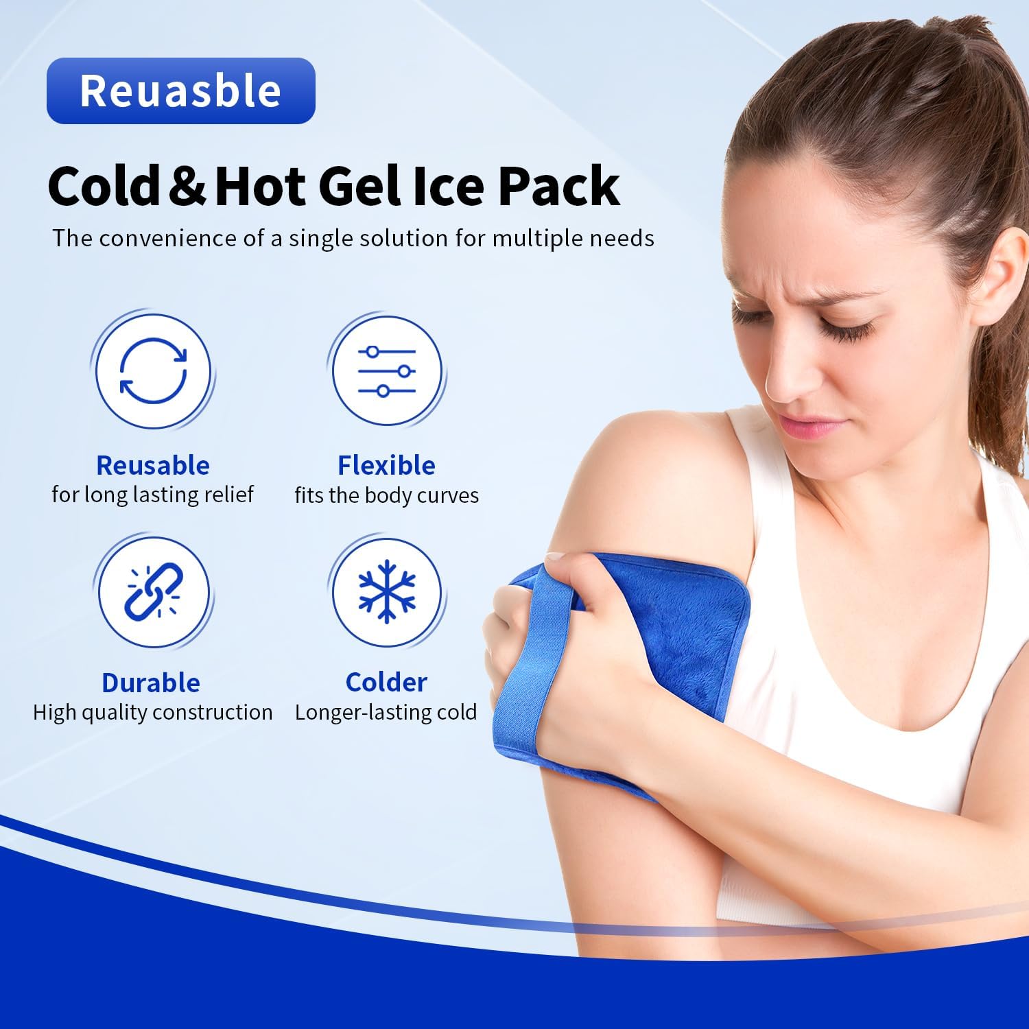 - Essential Ice Bag: Reusable gel ice pack is easily mold to your body and distribute the coldness evenly, allows faster recovery from post-surgery, toothache, headache, swelling and bruises, sports injuries, muscle pains, strain & stiffness, body aches and chronic pain, back pain, neck and knee pain !