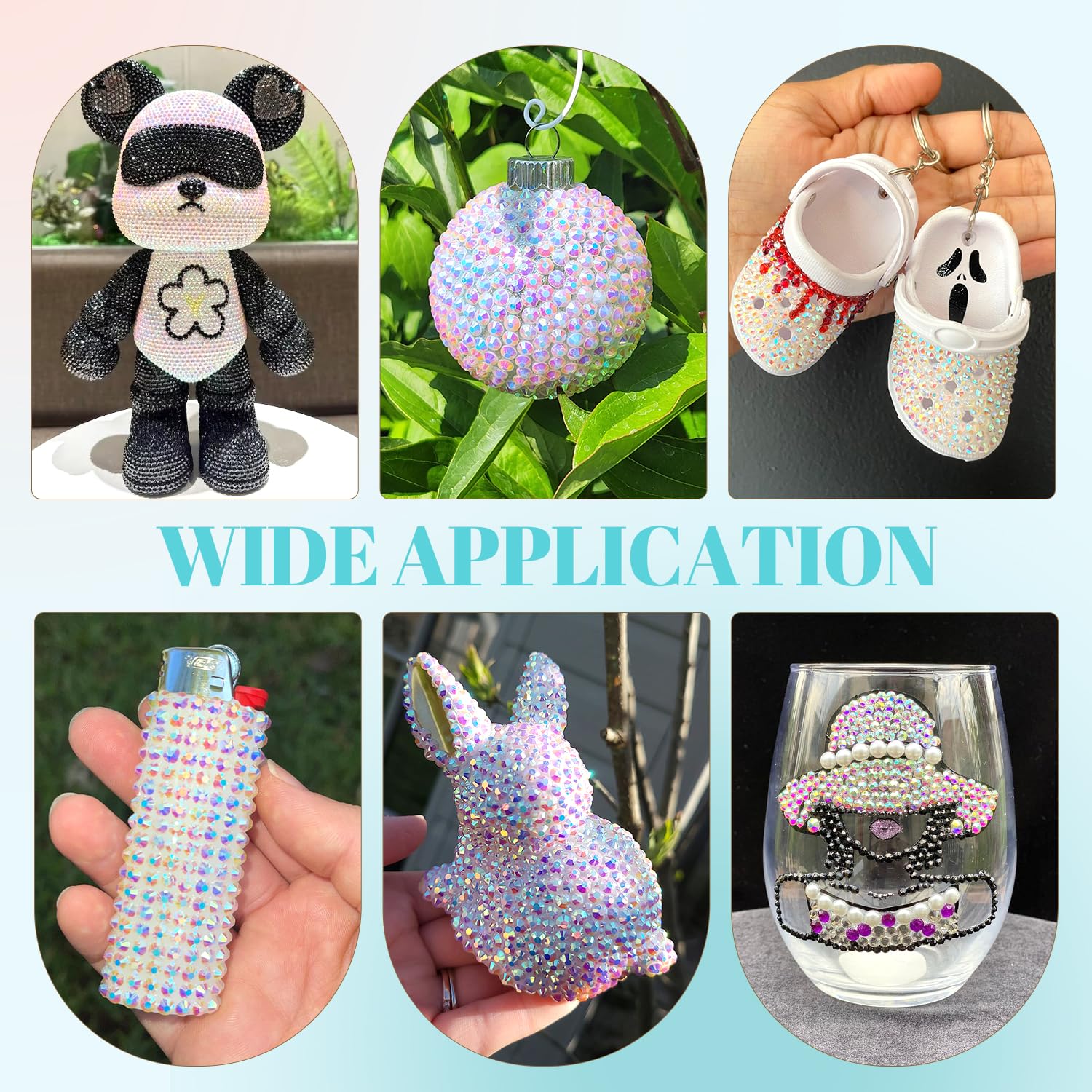 - 💎WIDE APPLICATION -- These sparkling iridescent resin crystals are perfect for creating dazzling looks. Use them for bedazzling DIY crafts like shoes, tumblers, mugs, bottles, phone cases, popsockets, scrapbooks, photo frames, diamond paintings, greeting cards, bags, glasses, guitars, keychains, hats, masks, hair clips, bracelets, wristbands, clothing, wedding dresses, and more. Apply it to what you want to bling!
