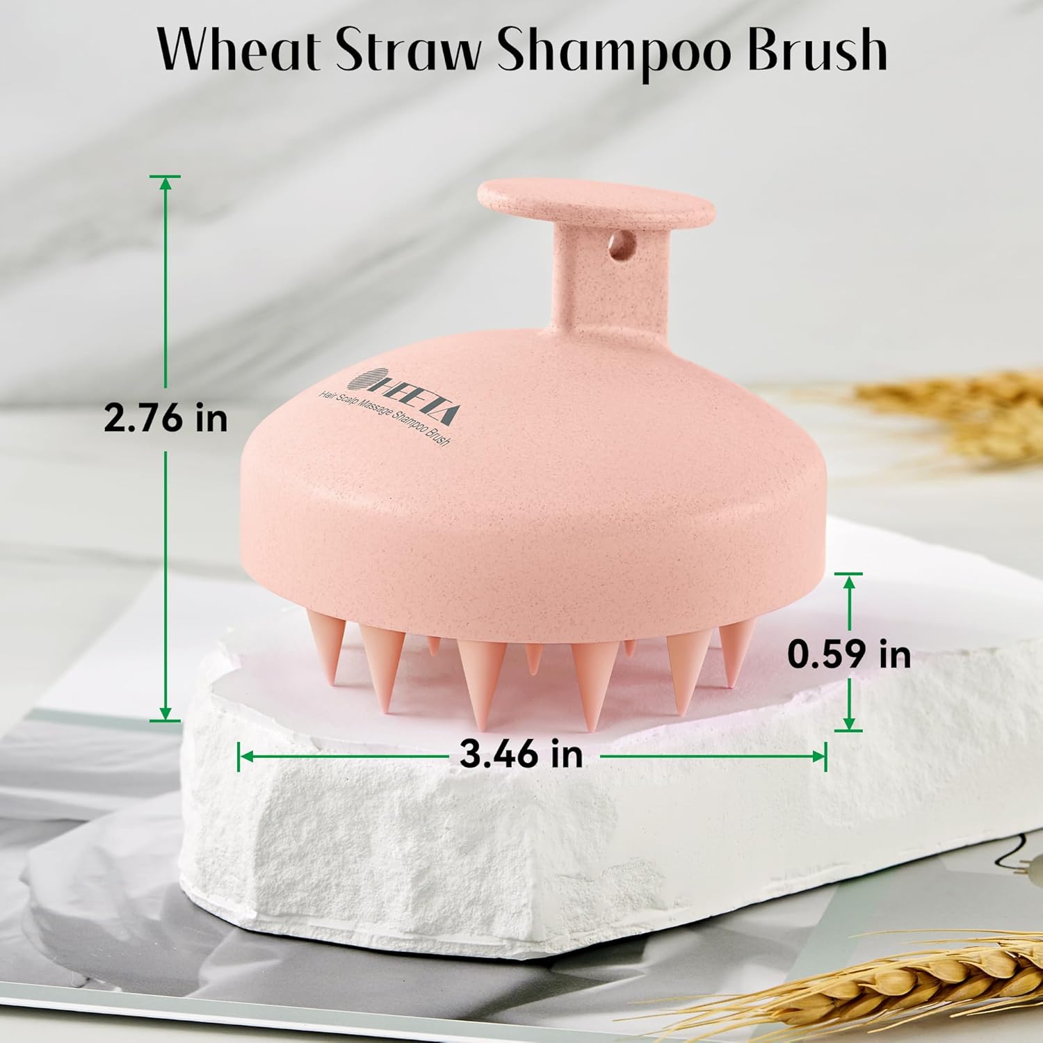 - Wheat Straw Design: HEETA shampoo brush is crafted from natural wheat straw and soft silicone bristles, and will not cause harm to the human body and nature. It’s an excellent alternative to ordinary plastic materials and helps reduce plastic waste