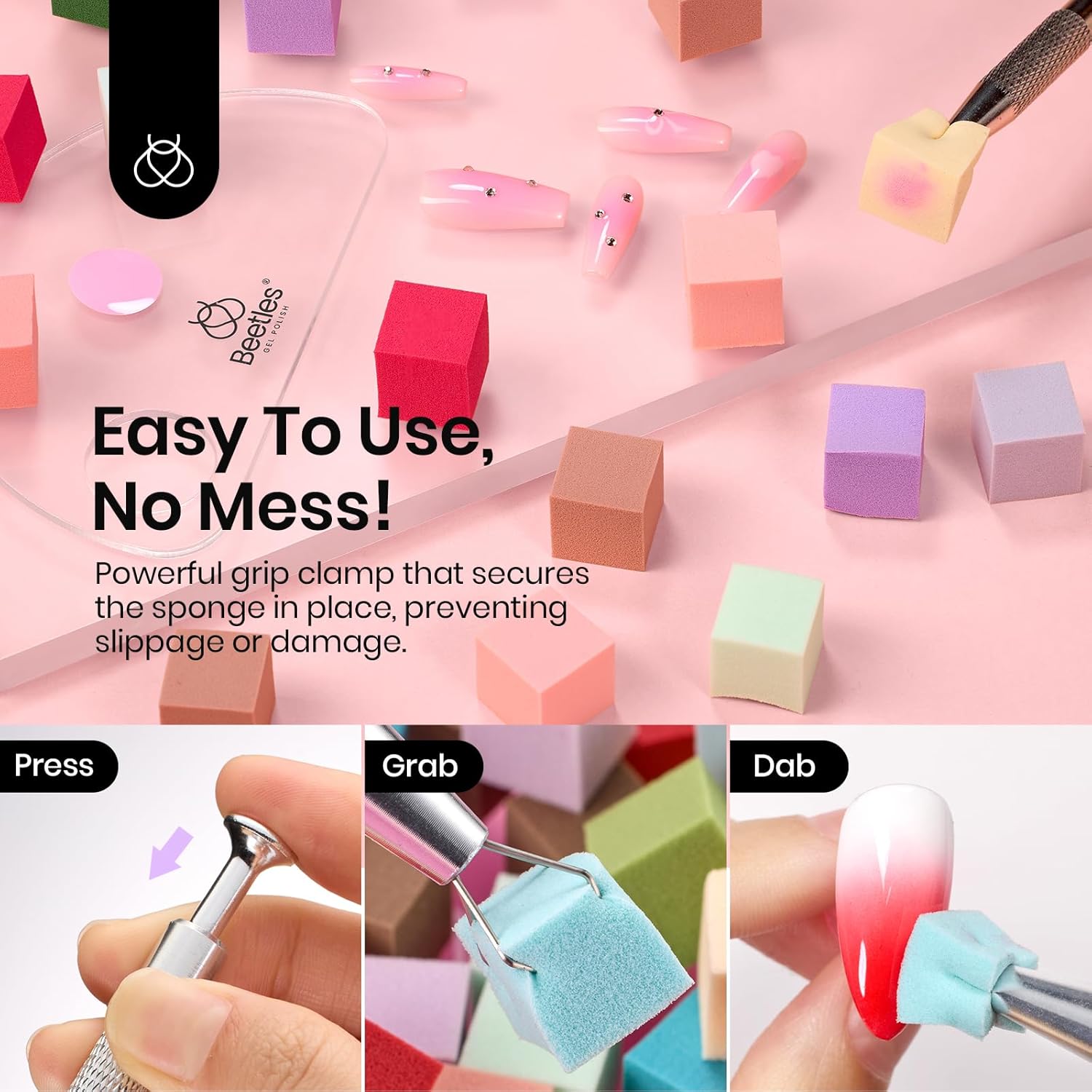 - 【Nail Sponges for Ombre】: This is a nail tool specially designed for gradient nail art. The nail sponge and grip clip make it easy for you to quickly create ombre nail art effects, especially suitable for beginners.