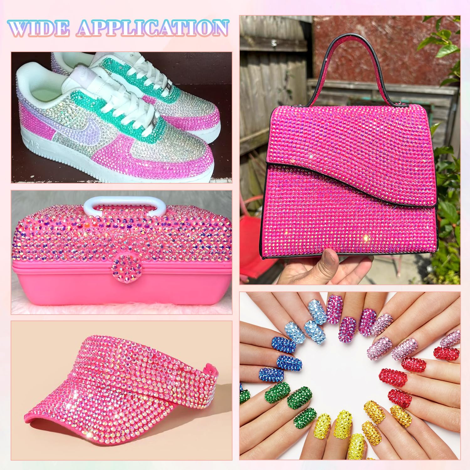 - WIDE APPLICATION -- These sparkling iridescent resin rhinestones are perfect for creating dazzling looks. Use them for bedazzling crafts like shoes, tumblers, mugs, bottles, phonecases, bags, glasses, hats, masks, clothing, clothes or nail art and more