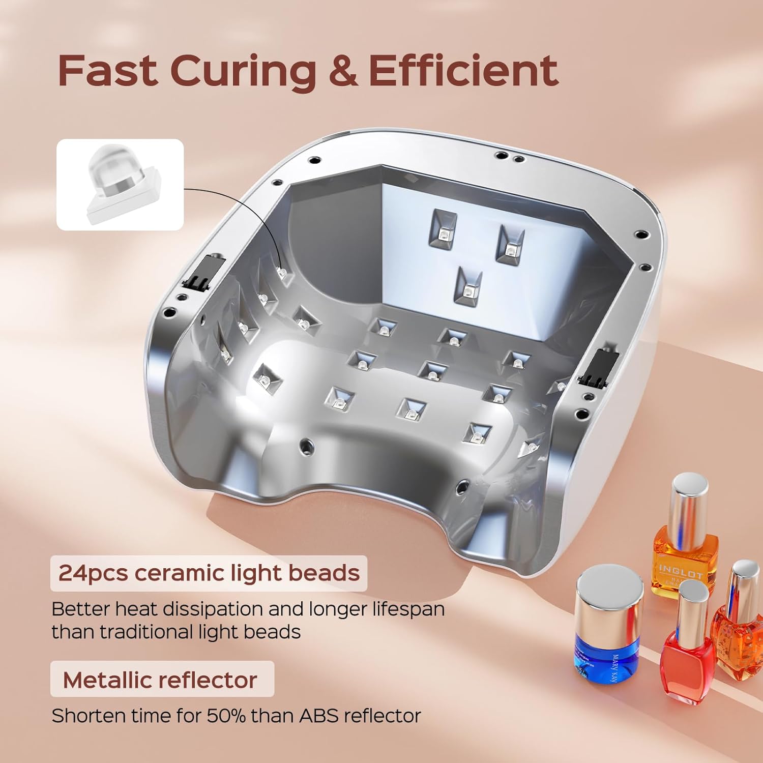 - [Fasting Curing All Gel] BOLASEN new LED beads technology combine to metal base and metallic reflector, your average curing time is shortened by 70% with P30 Pro. 24pcs LED beads evenly-distributed for full coverage. The UV lamp beads design single chip and wavelength, increasing the power of light, faster to cure all gel polish, base/top coat, builder gels, etc.