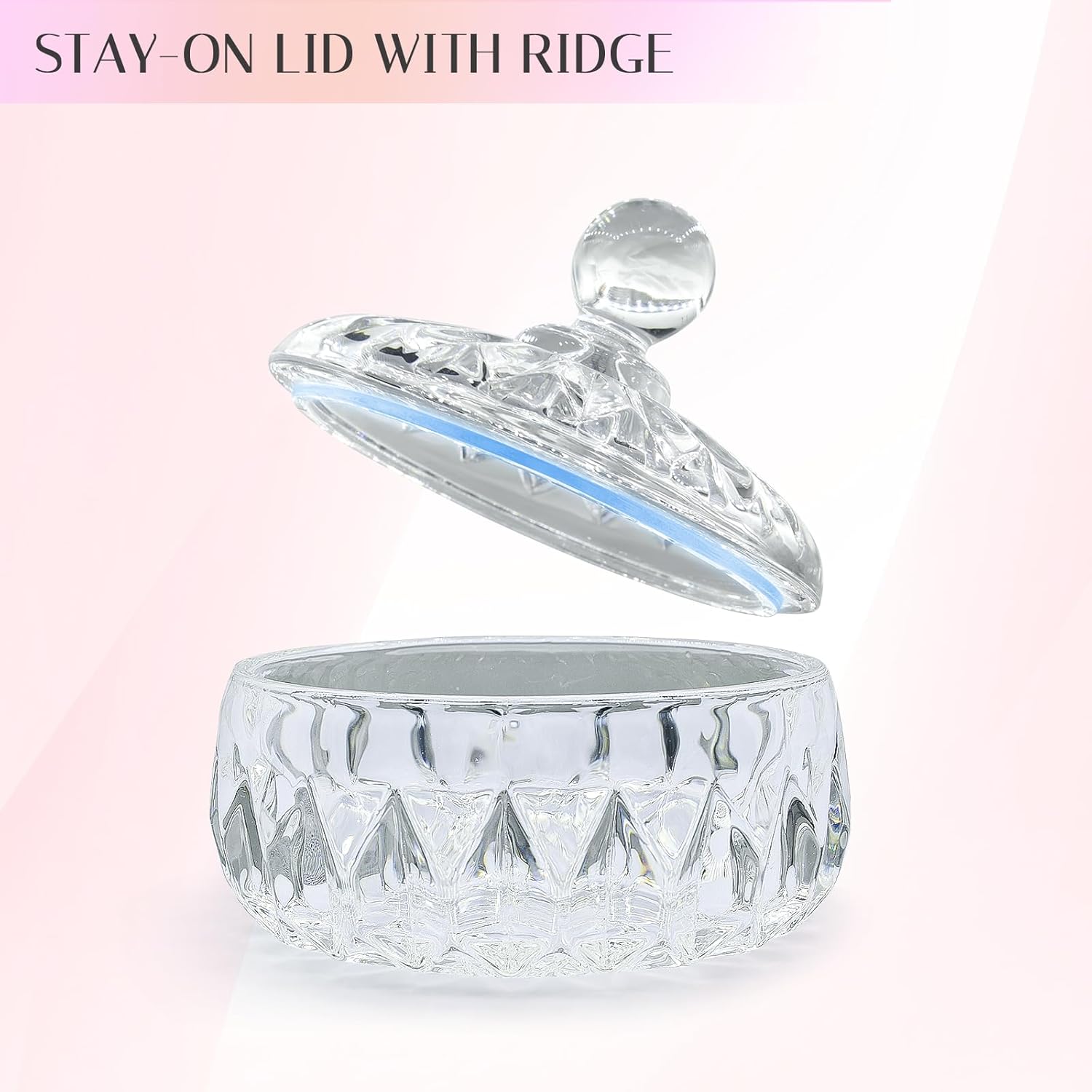 - Elegant Design: The body powder container is made of high-quality crystal glass, the combination of crystal glass and detailed floral carvings creates a luxurious, timeless look that enhances any space. The container lid with ridge securely latches into the base, reducing the risk of being knocked over, and effectively protecting the body powder from moisture and dirt.