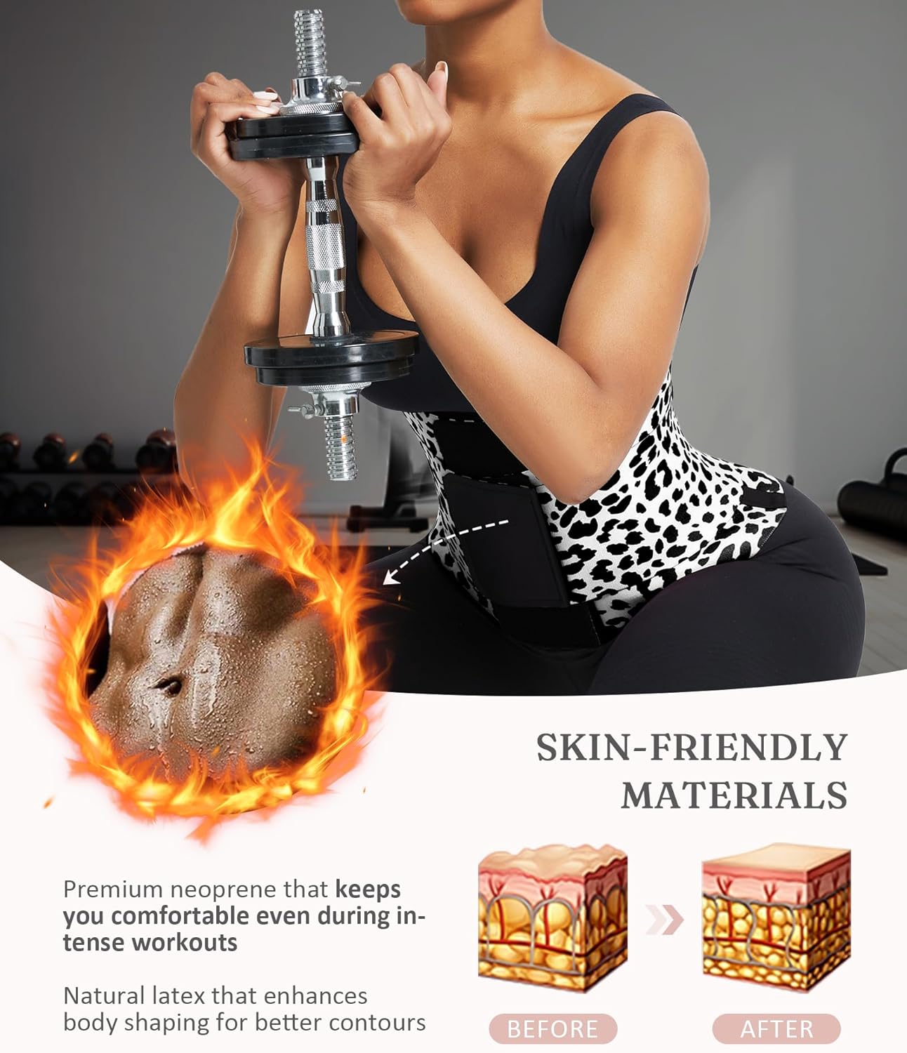 - Premium Stretch Fabric: Our waist trainer crafted from a blend of polyamide and spandex for targeted support and comfortable compression. The breathable material promotes natural heat retention during activity. Attention:Contains Latex Fiber. May cause allergic reactions in sensitive individuals. If you are allergic to latex or if you are not sure about this, please consult to your doctor for instructions before usage.