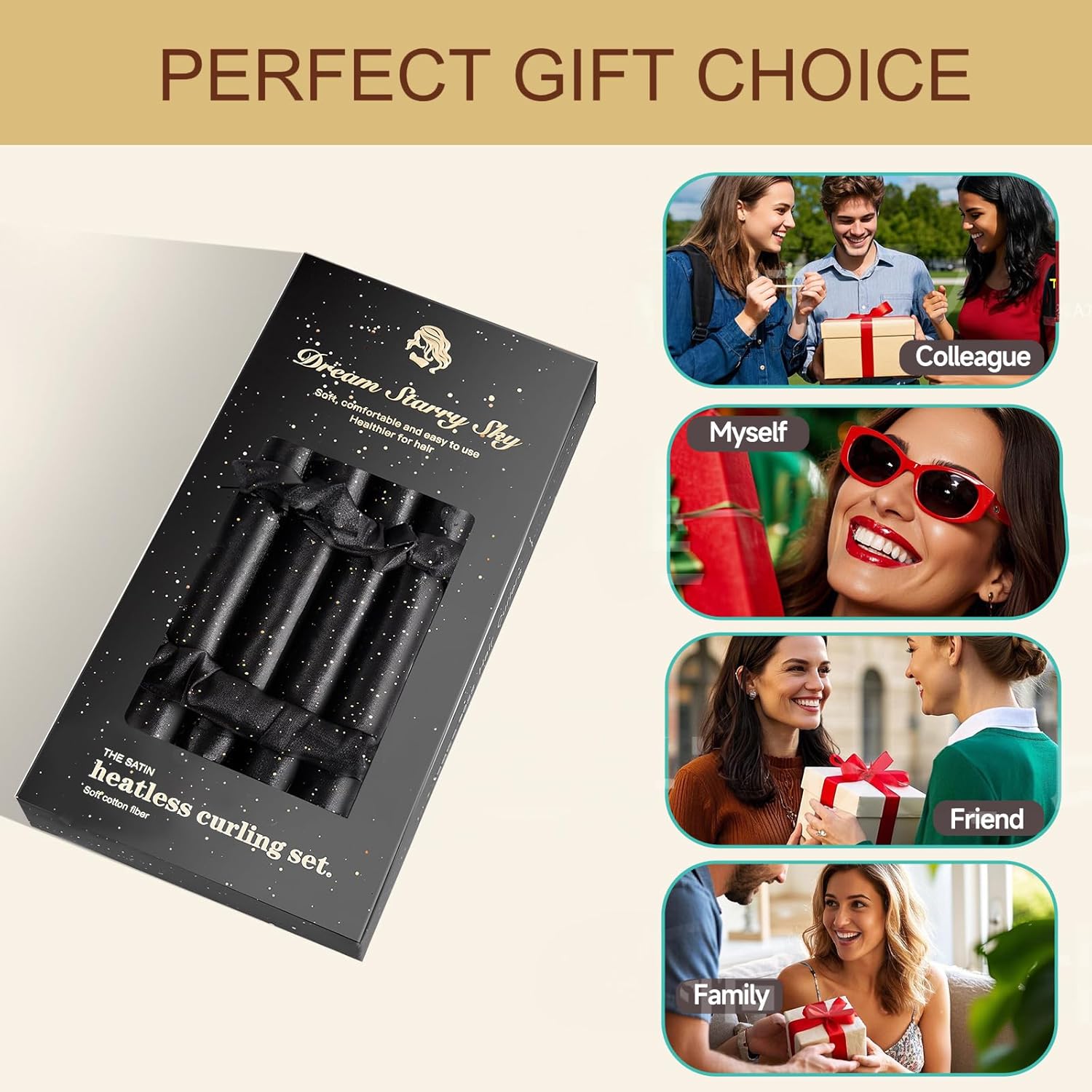 - 【No More Heat Damage】 Avoid heat damage with this perfect hair roller for heatless curls alternative to traditional hot rollers and other rough hair curlers. This set includes a curling rod and two satin sleep scrunchies, all covered in high-quality, silky satin fabric.