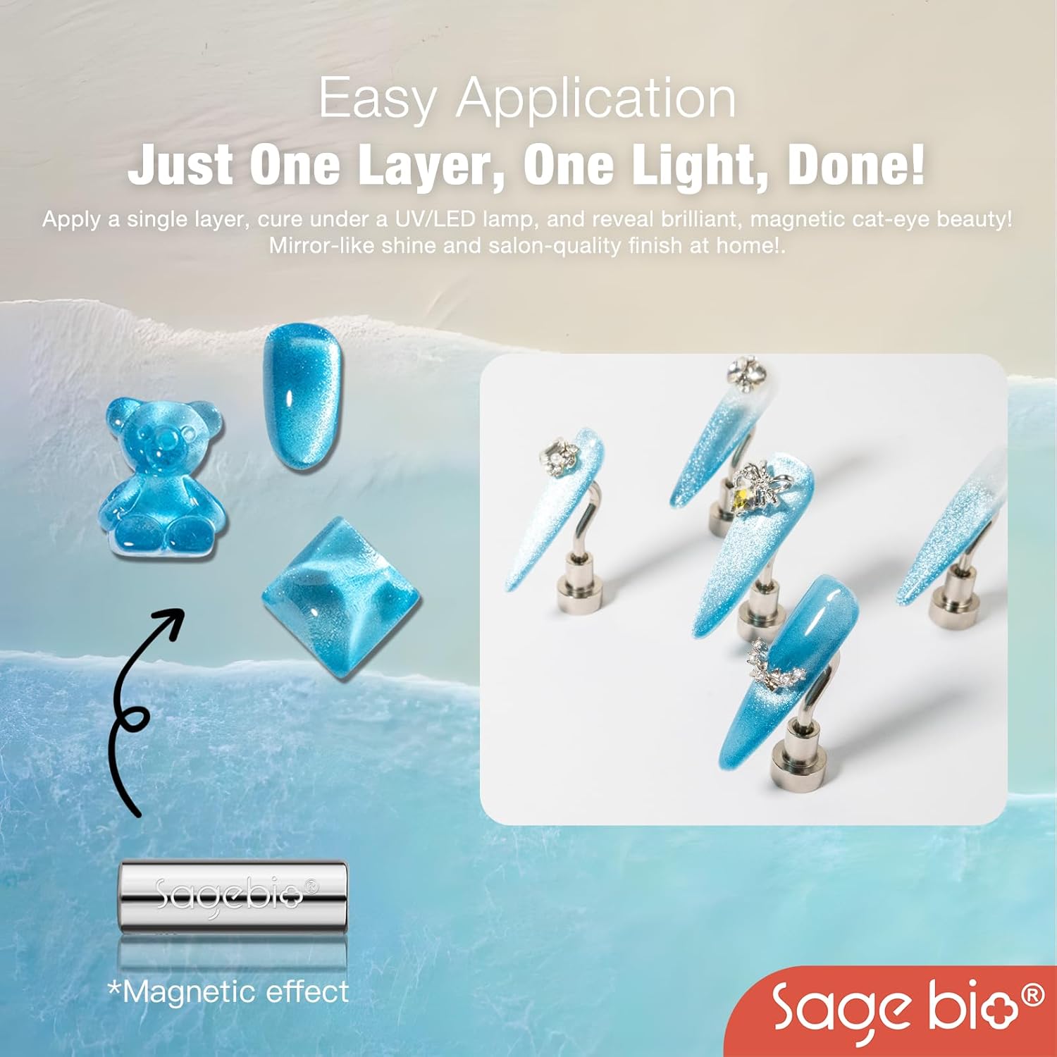 - Multifunctional Formula: SAGEBIO’s Cat Eye Gel Nail Polish combines both the base and color in one easy-to-use formula. No need for additional base or top coats, streamlining your nail art routine.