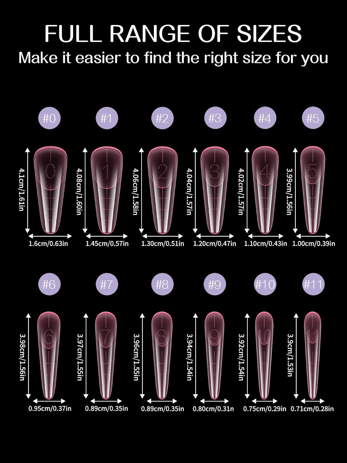 - 【15 Sizes of Nail Form Mold】150PCS coffin clear dual forms for poly nail gel offers 15 different nail sizes , and each size of long nail tips is separated by a small grid, a total of 15 grids, so they're easy and convenient to choose the suitable size to meet your nail's need.