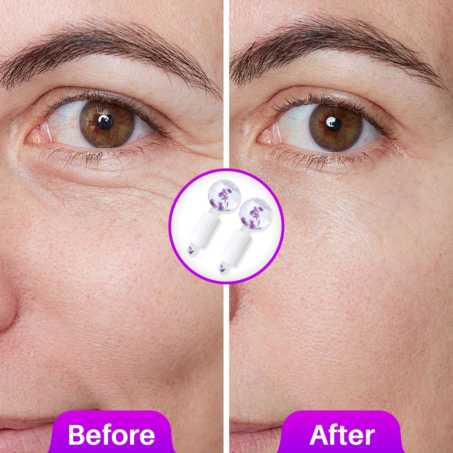 Ice Globes & Ice Roller for Face and Eyes - Facial Massage Tools for Skin Care, Reduce Wrinkles & Puffiness, Cooling Globes & Roller Ball for Glowing Skin 2PCS (Purple)