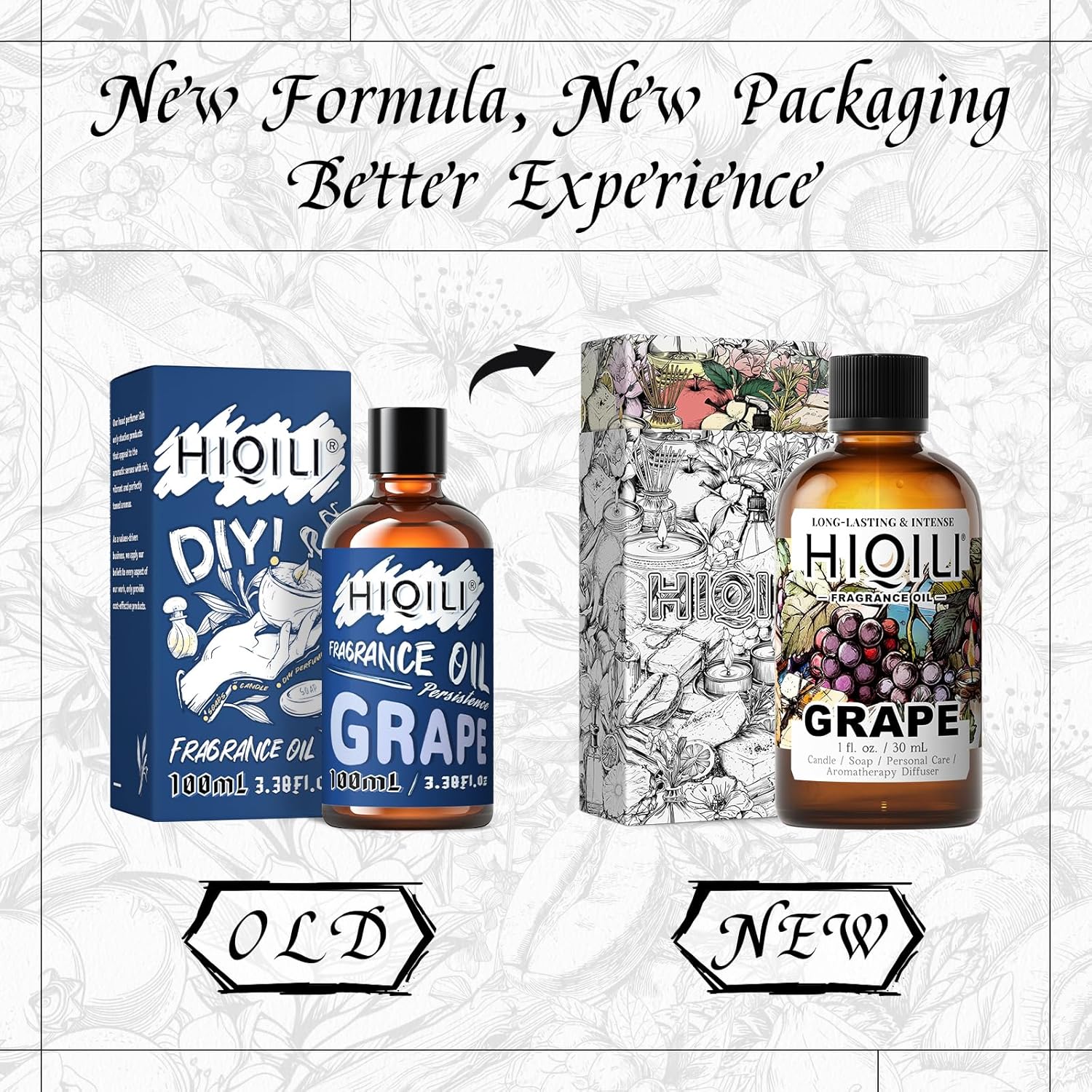 HIQILI Grape Fragrance Oil for Diffuser & Oil Burner, Fruity Scents for Making Candles, Hand Soap, Air Freshener, Long Lasting - 1 Fl Oz