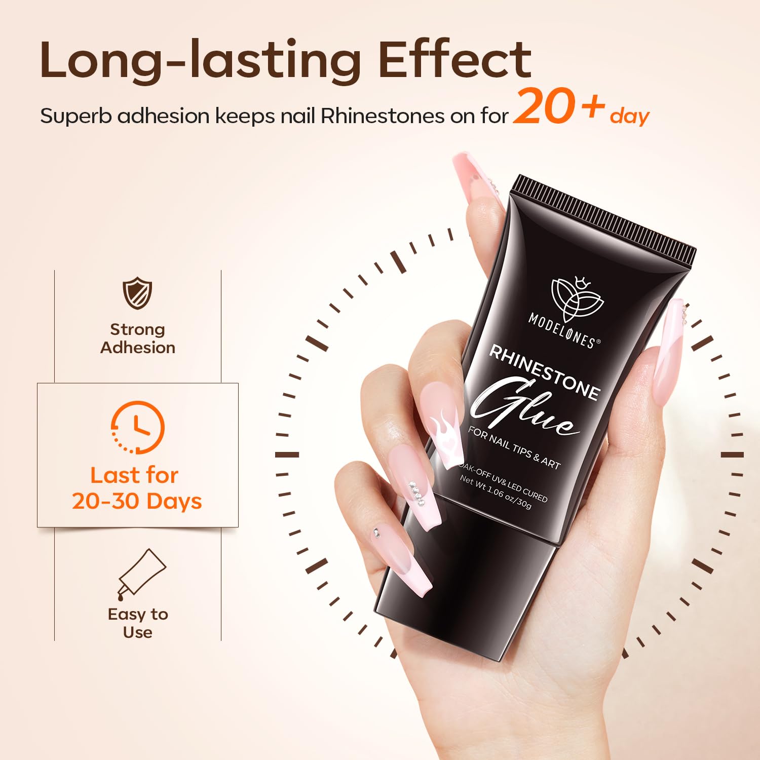 - Healthy Rhinestone Nail Glue: Modelones gel nail glue is made from natural resin with msds certificated, vegan, non-cruelty, with no harm to skin and nails